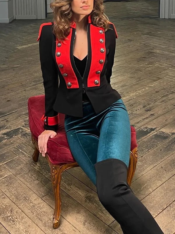 Long Sleeves Loose Buttoned Split-Joint Zipper Stand Collar Outerwear
