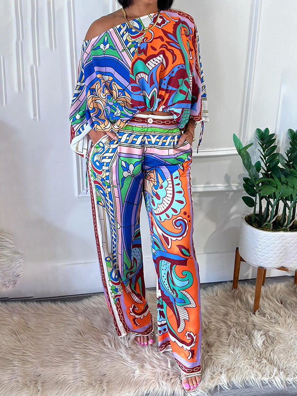 Long Sleeves Loose Drawstring Elasticity Printed Boat Neck Blouses&shirts Tops