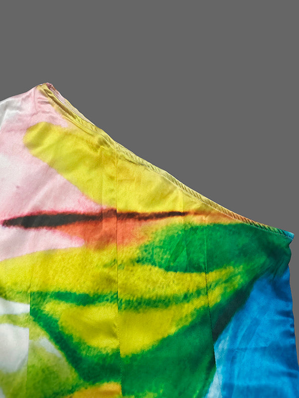 Long Sleeves Loose Flower Print Pleated Pockets One-shoulder Jumpsuits