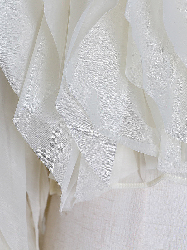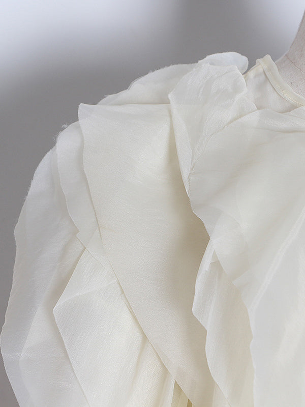 Long Sleeves Loose Lace-Up Solid Color Tiered Round-Neck Blouses&Shirts Tops