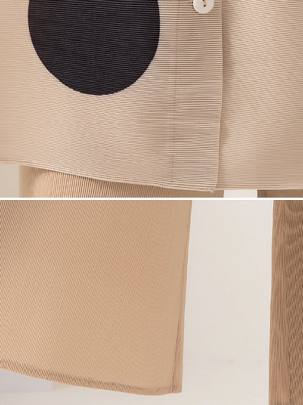 Long Sleeves Loose Pleated Polka Dot Stand Collar Top + Pants Bottomtwo Pieces Set