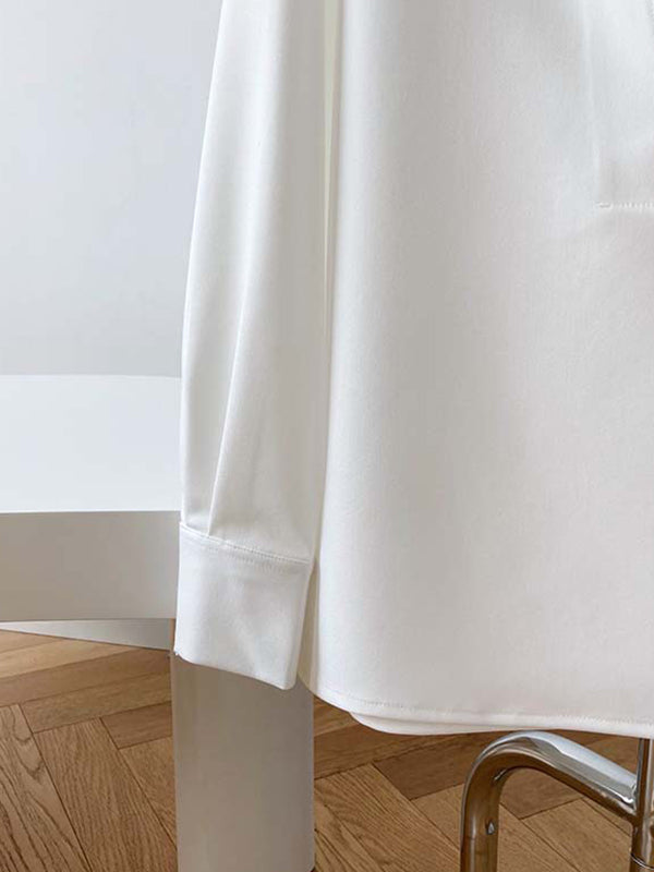Long Sleeves Loose Solid Color Lapel Blouses