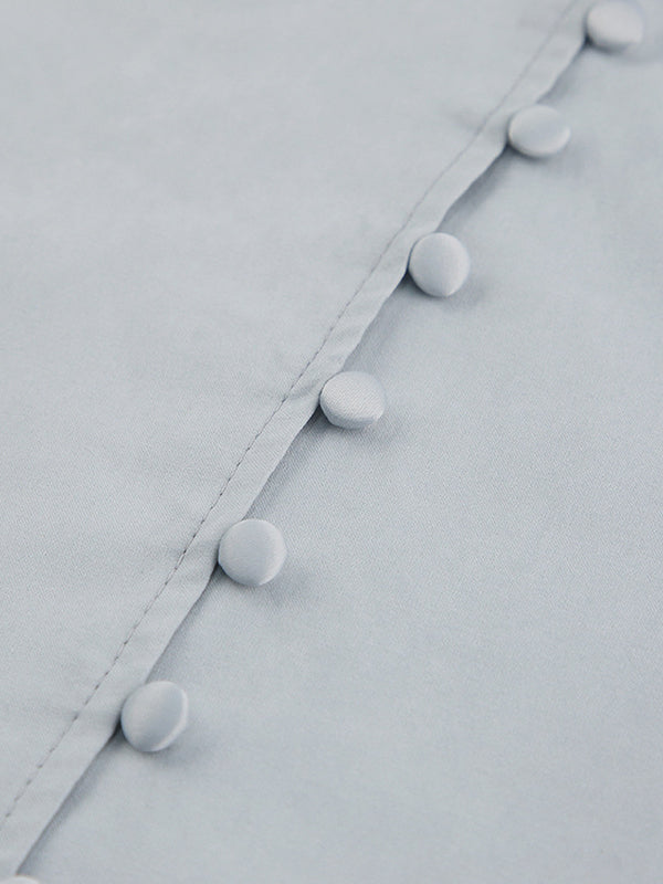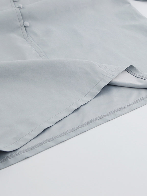 Long Sleeves Loose Solid Color Split-Joint High-Neck Blouses