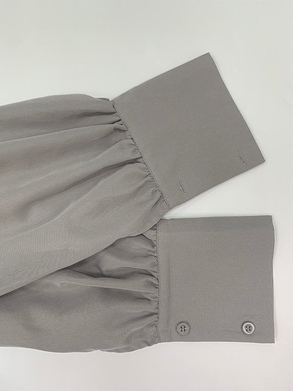 Long Sleeves Loose Solid Color Split-Joint Split-Side Lapel Maxi Dresses Shirt Dress