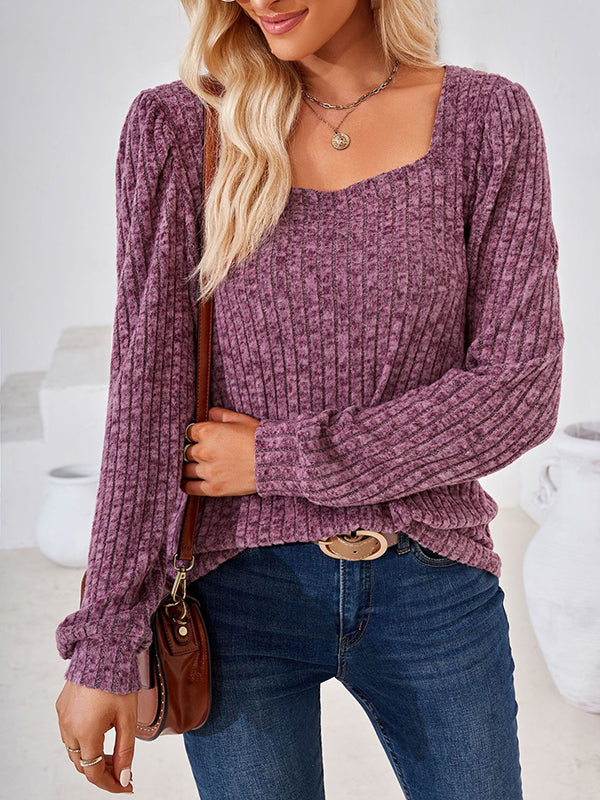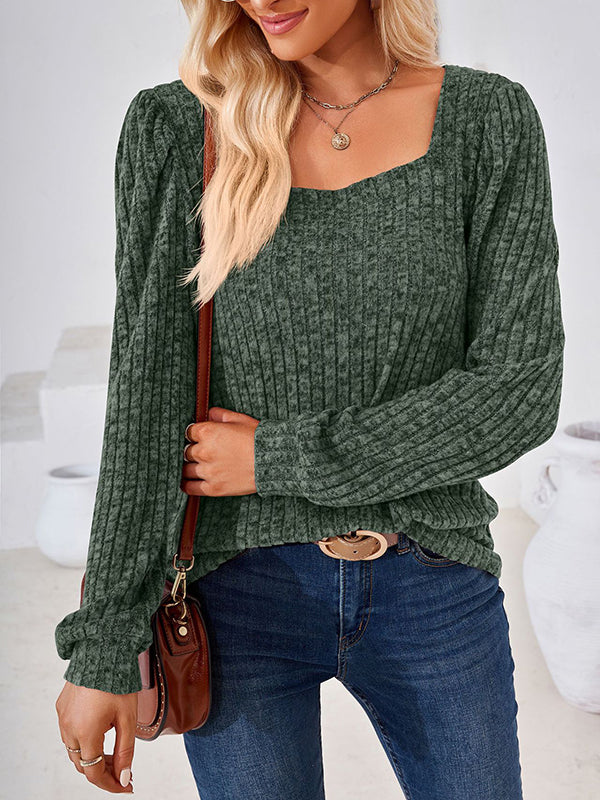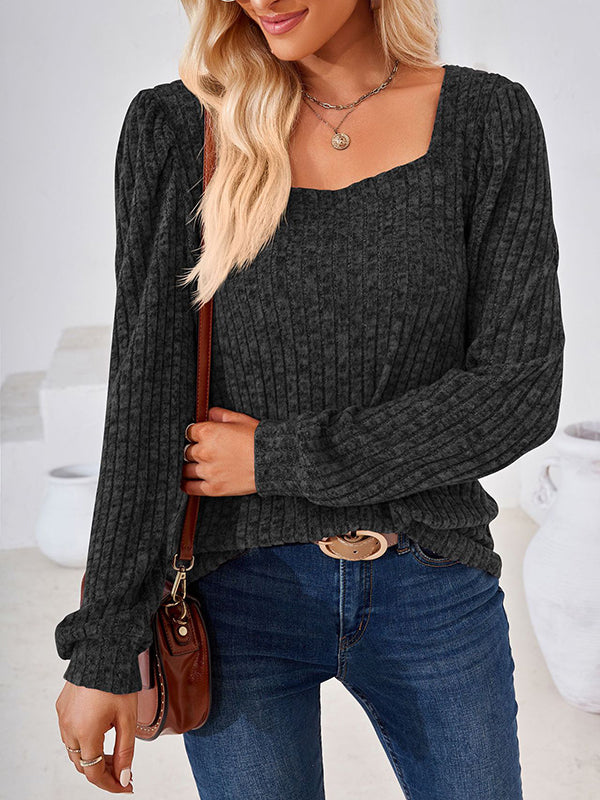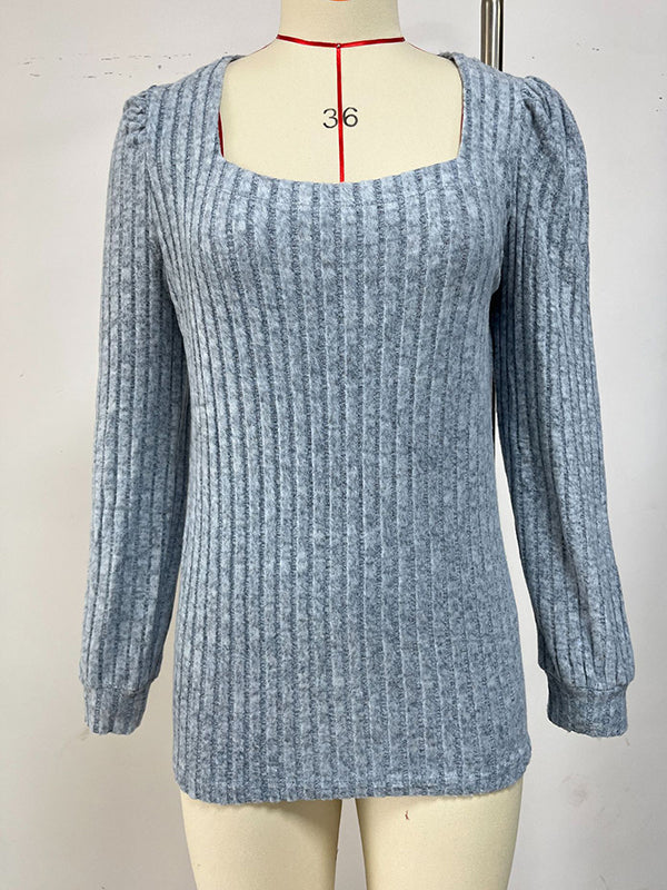 Long Sleeves Loose Solid Color Square-Neck T-Shirts Tops