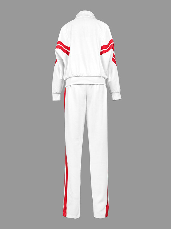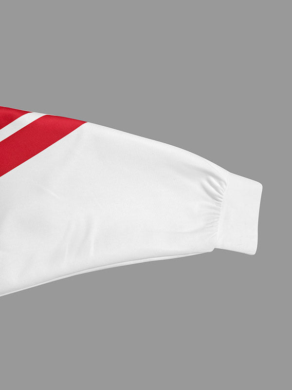 Long Sleeves Loose Split-Joint Striped Zipper Stand Collar Jackets Outerwear