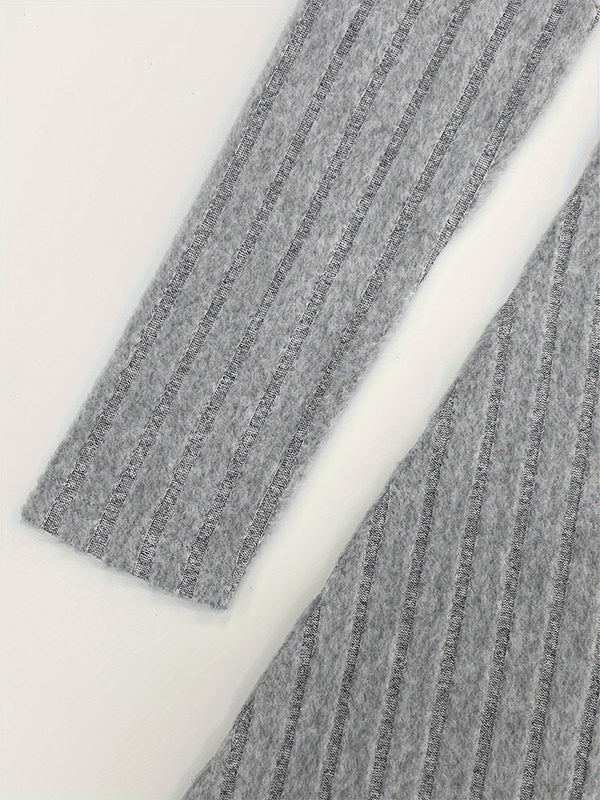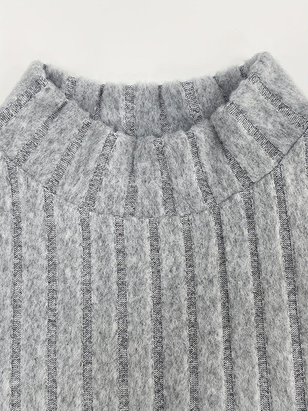 Long Sleeves Pleated Solid Color Split-Joint High Neck Mini Dresses