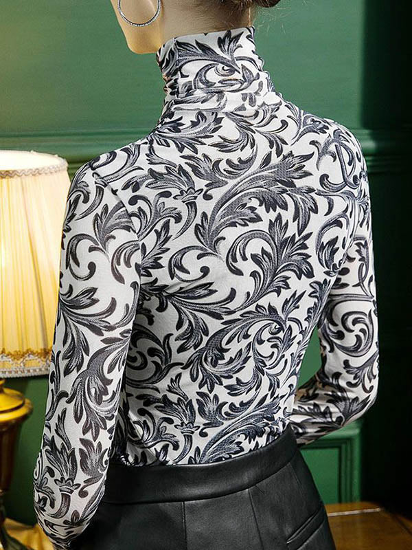 Long Sleeves Skinny Contrast Color Split-Joint High Neck T-Shirts Tops
