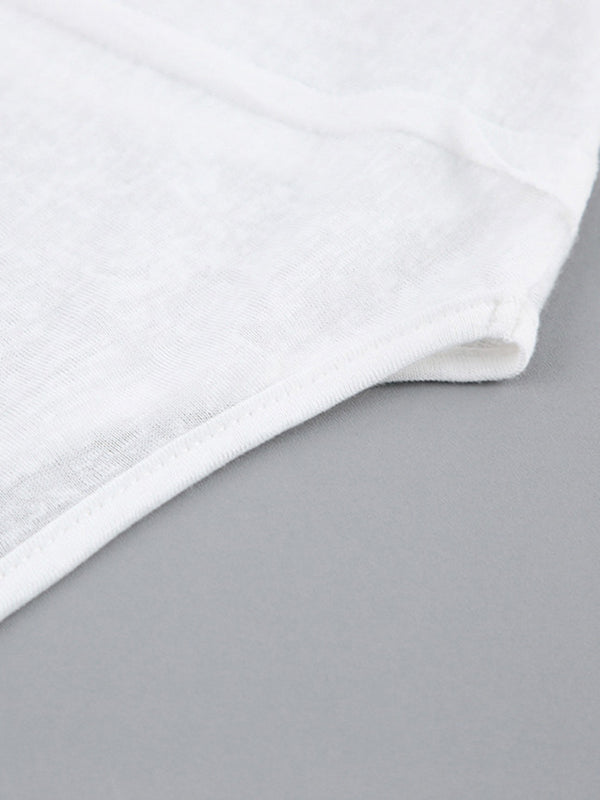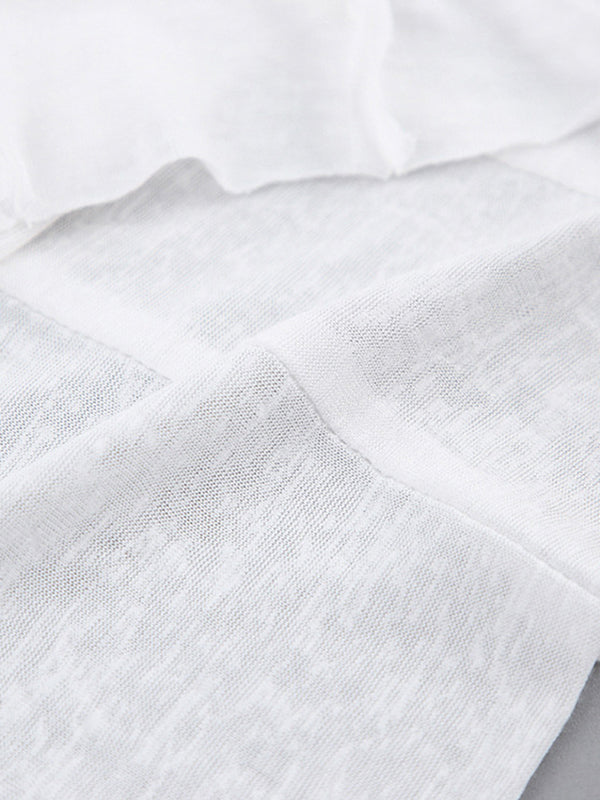 Long Sleeves Skinny Pleated Solid Color Round-Neck T-Shirts