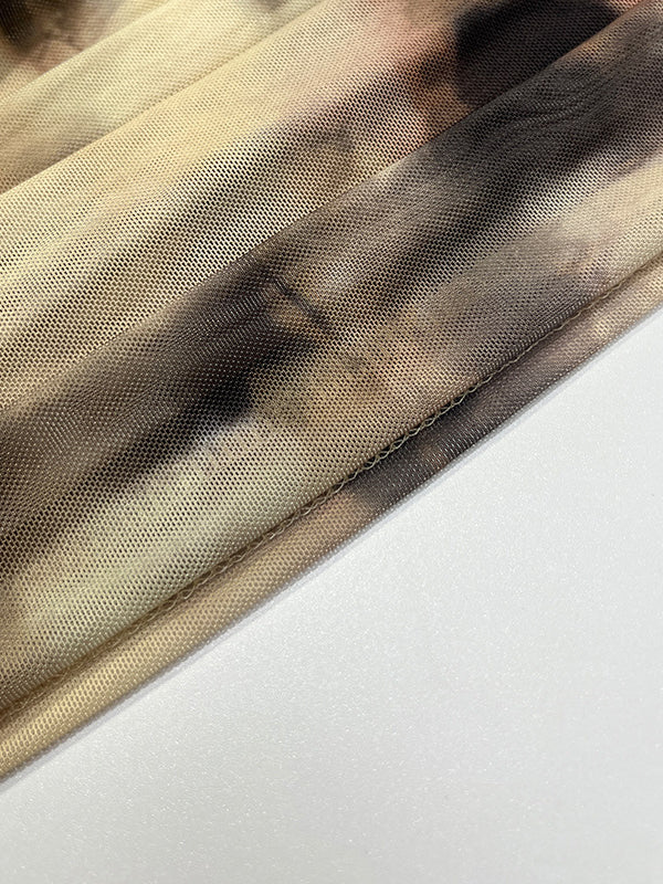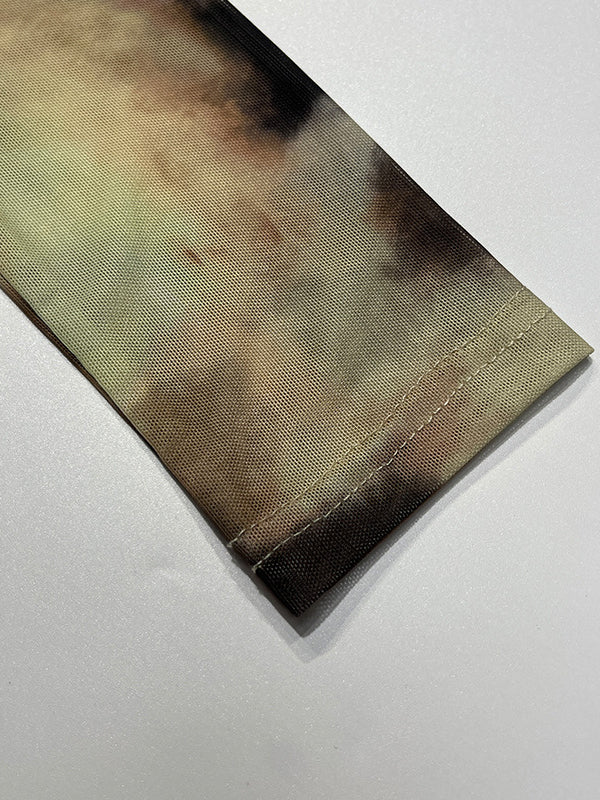 Long Sleeves Skinny Pleated Split-Joint Tie Dye Off-The-Shoulder T-Shirts Tops