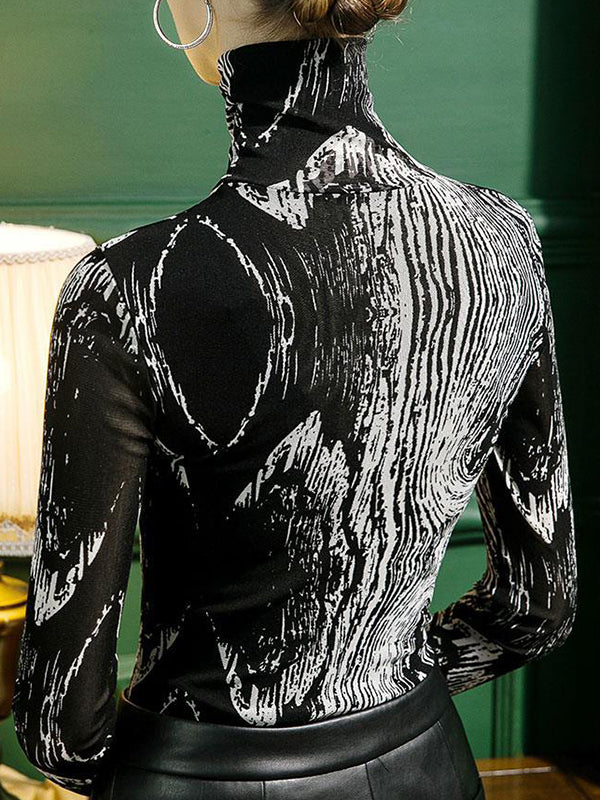 Long Sleeves Skinny Printed High-Neck T-Shirts