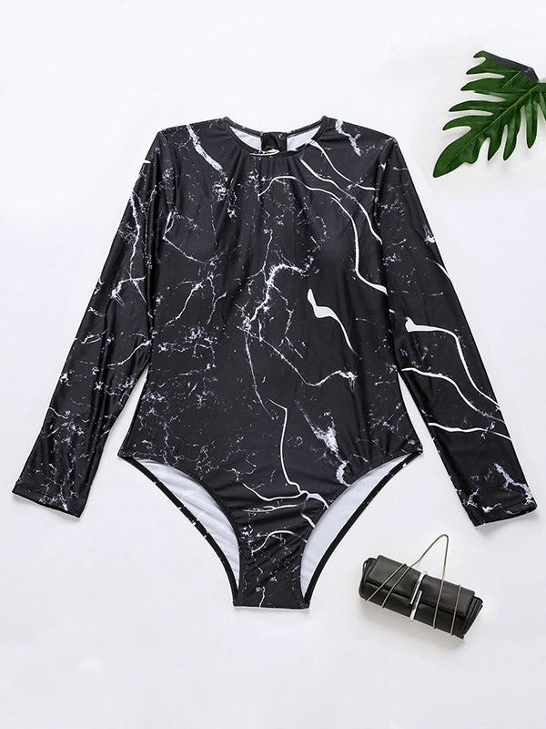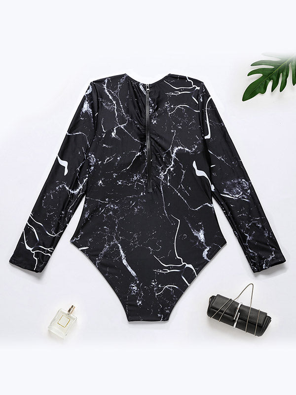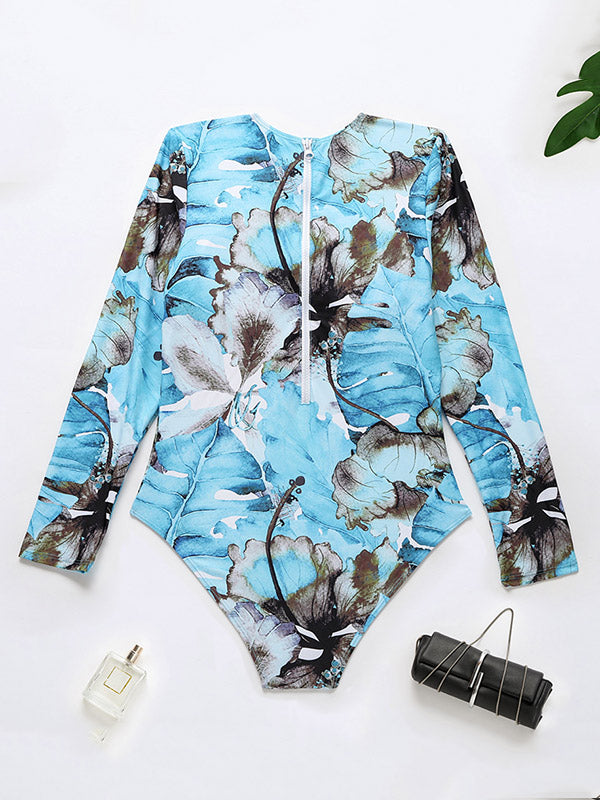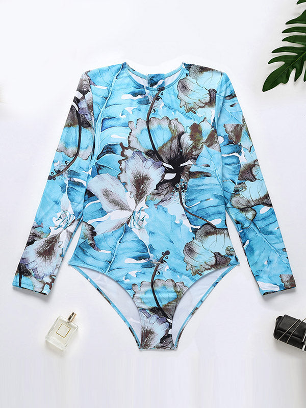 Long-Sleeves Sun-Protection Floral Printed One-Piece Wetsuits