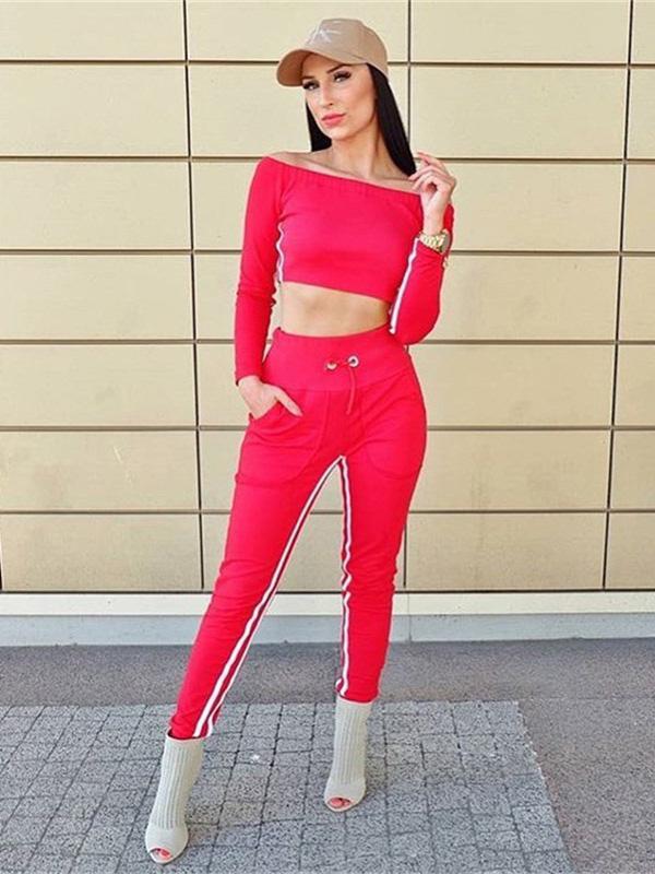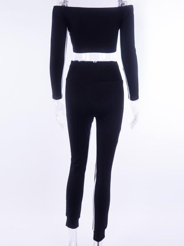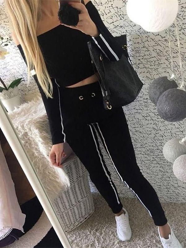 Long Sleeves Tee And Stripes Sports Pants Suits