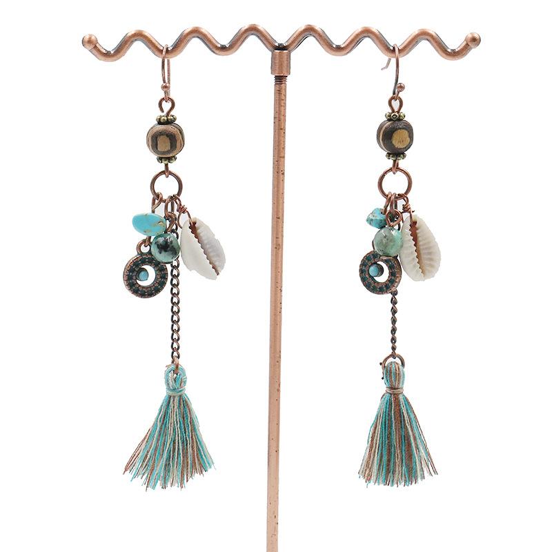 Long tassel jewelry handmade vintage wooden beads shell Earrings Wholesale