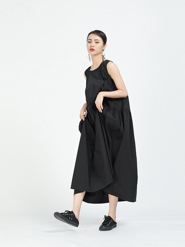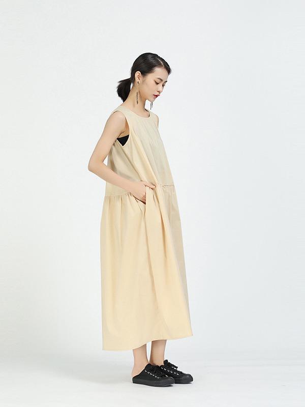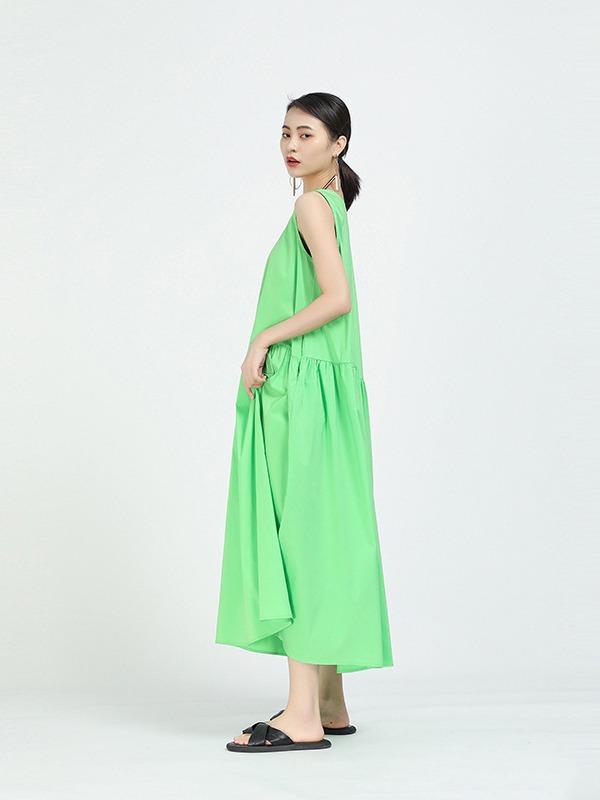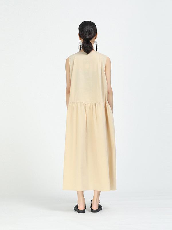 Loose A-Line Sleeveless Big-Hem Midi Dress