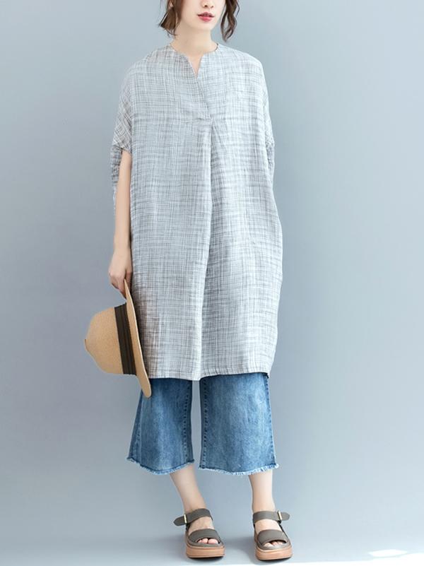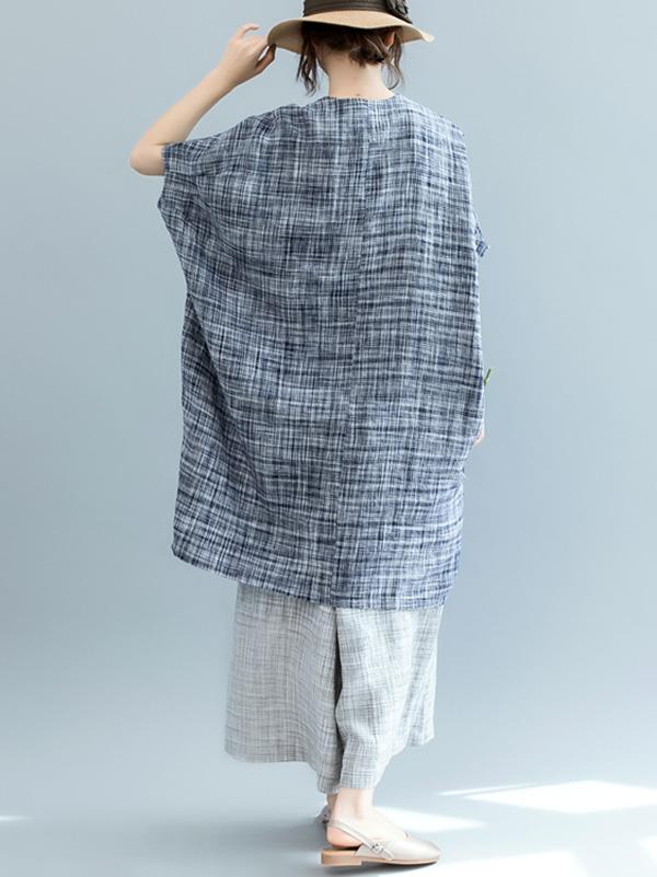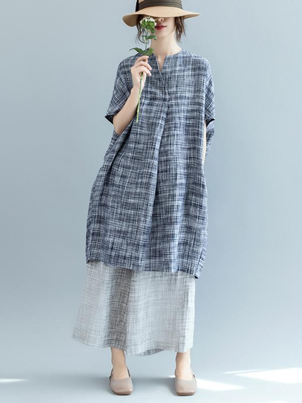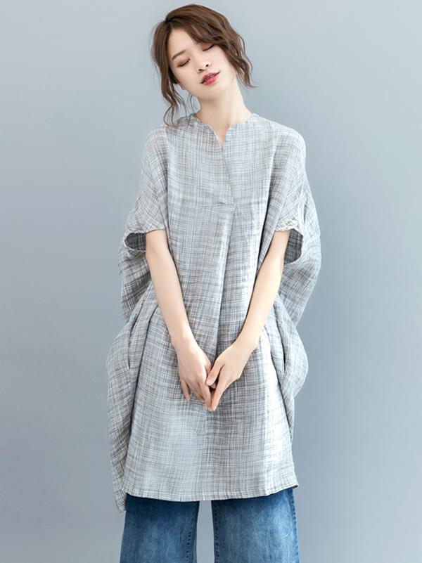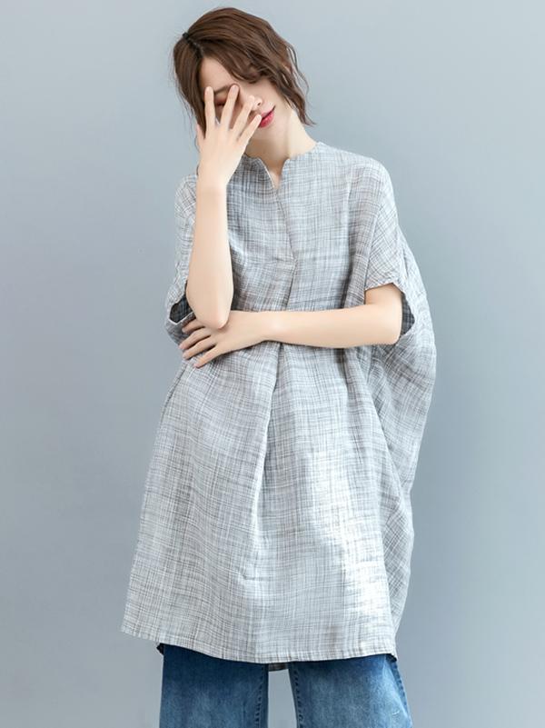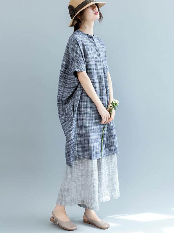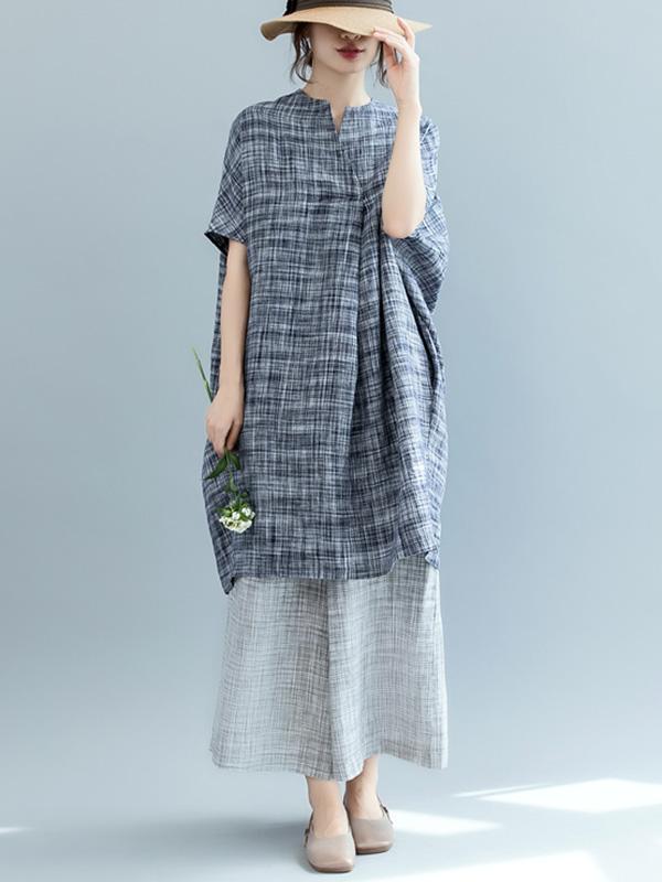 Loose Batwing Plaid Dress