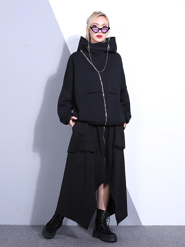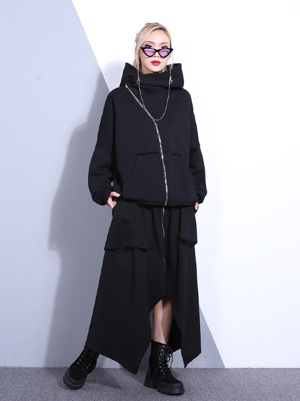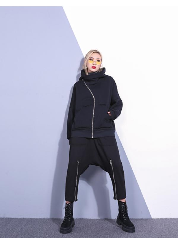 LOOSE BOYFRIEND STYLE ZIPPER HOODIE OUTWEARS