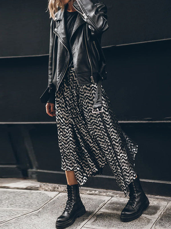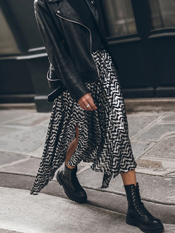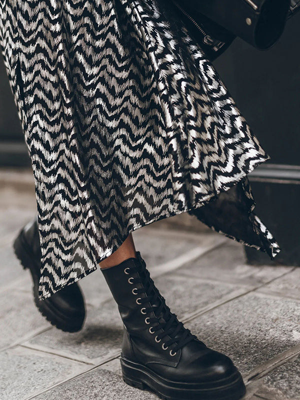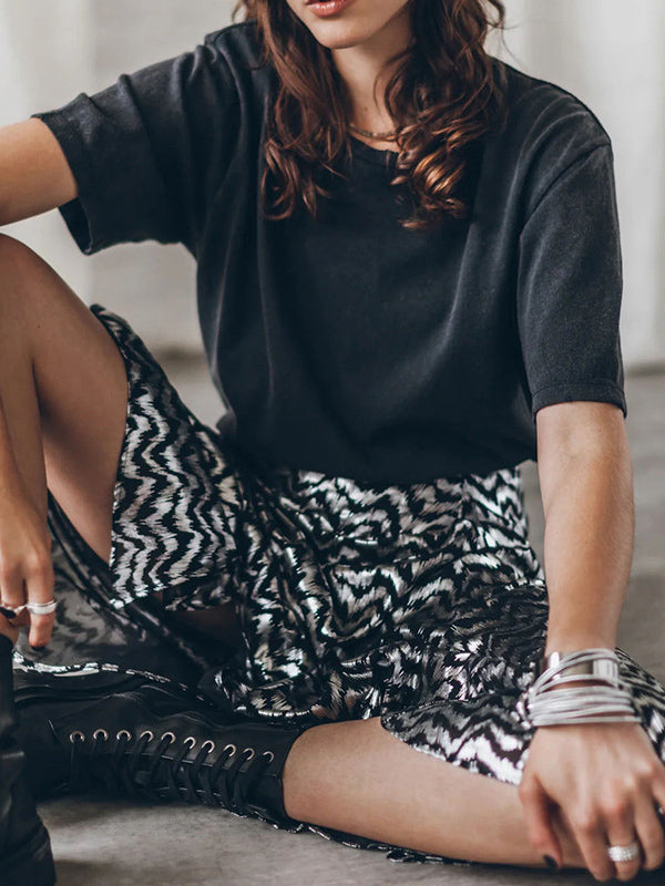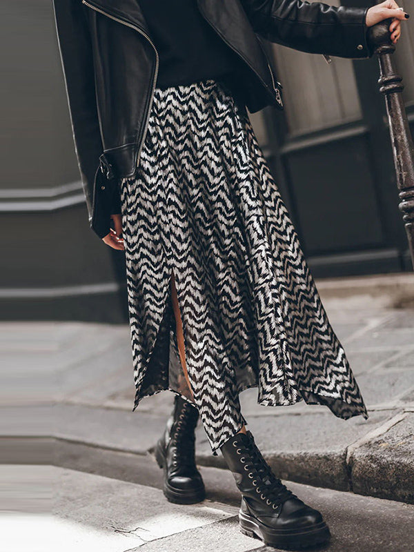 Loose Bronzing Contrast Color Split-Side Skirts Bottoms