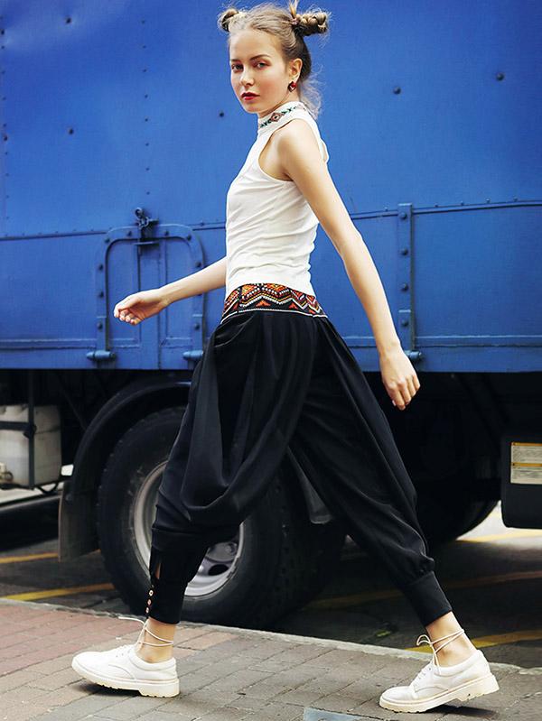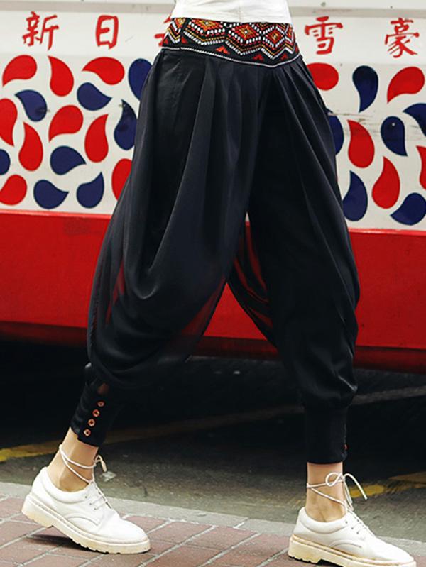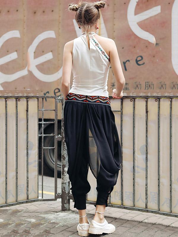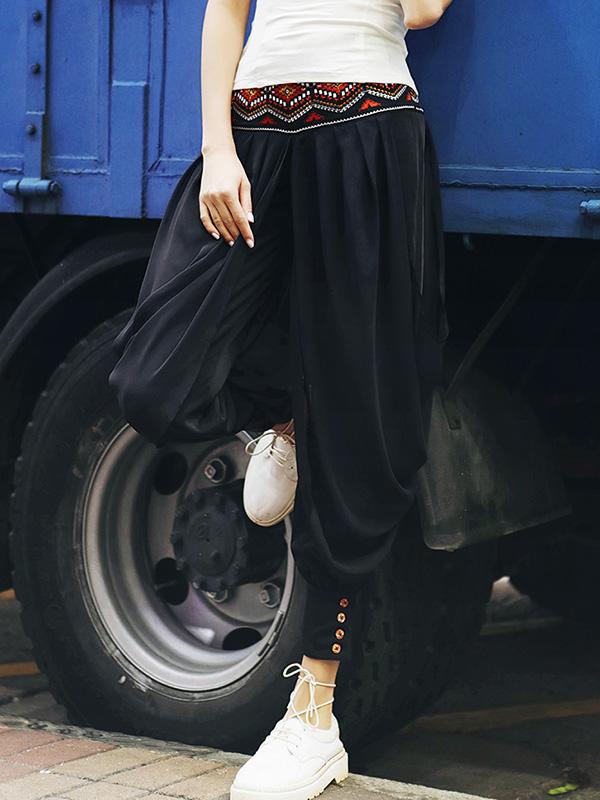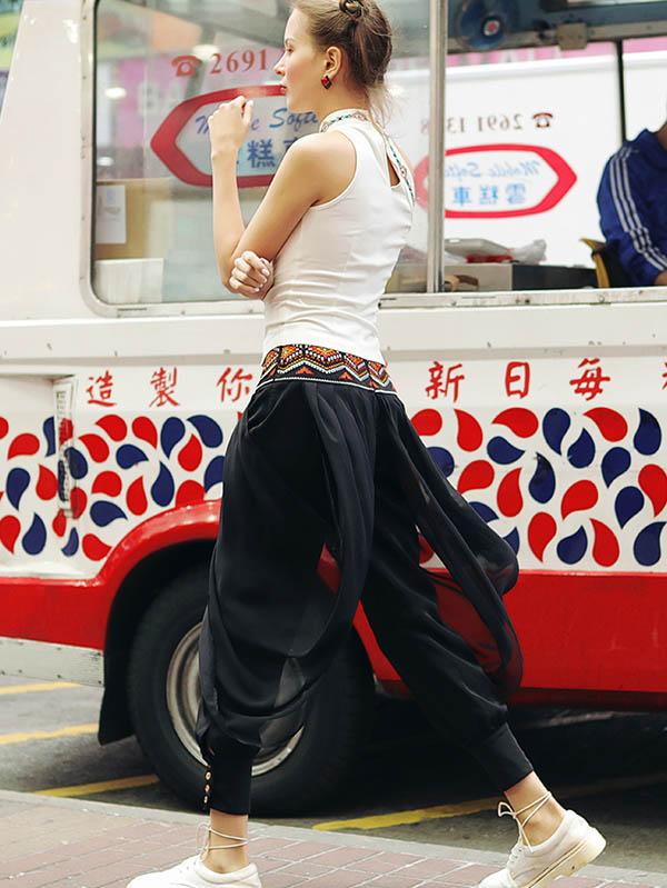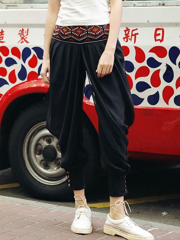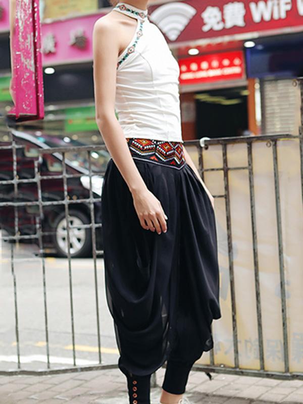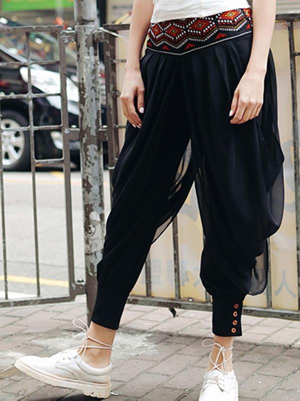 Loose Chiffon Embroidered Wide Leg Harem Pants