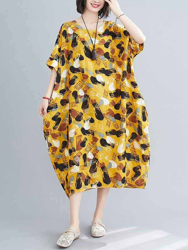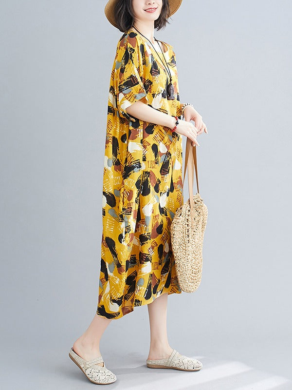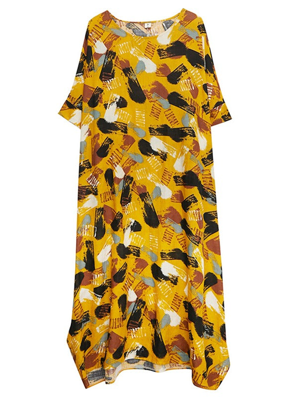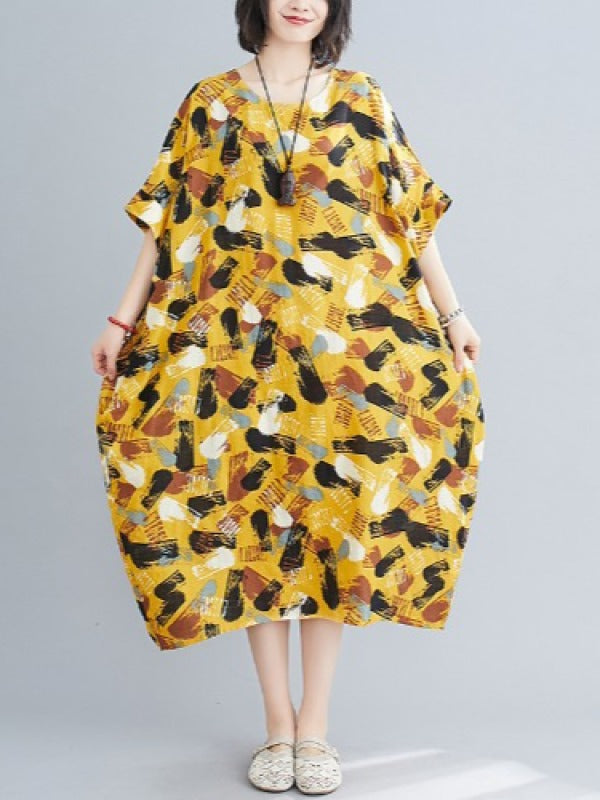 LOOSE COMFORTABLE COTTON YELLOW DRESS