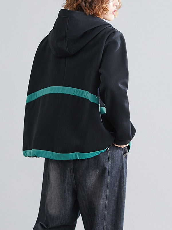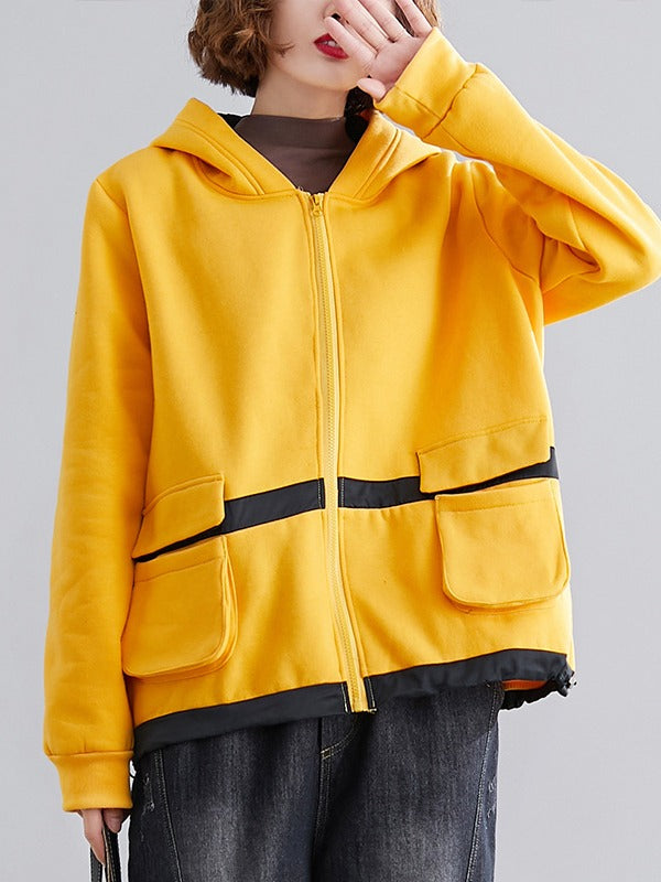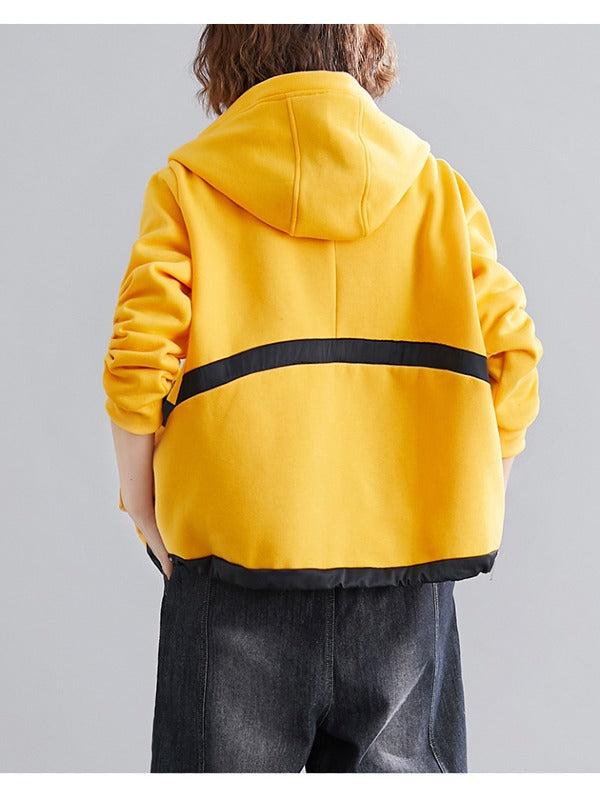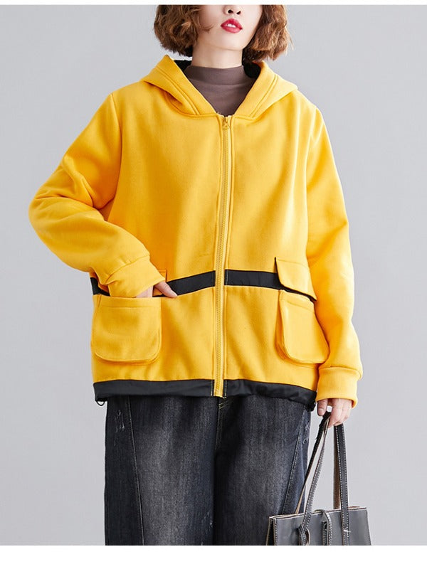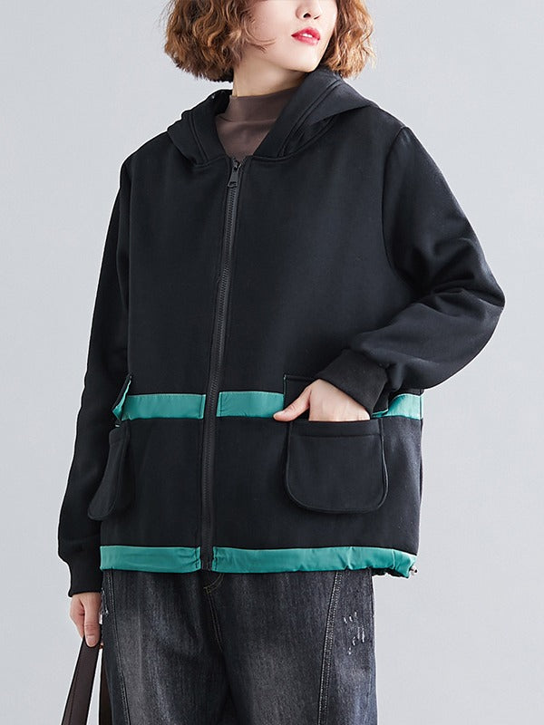 LOOSE CONTRAST COLOR POCKET THICKENING COAT