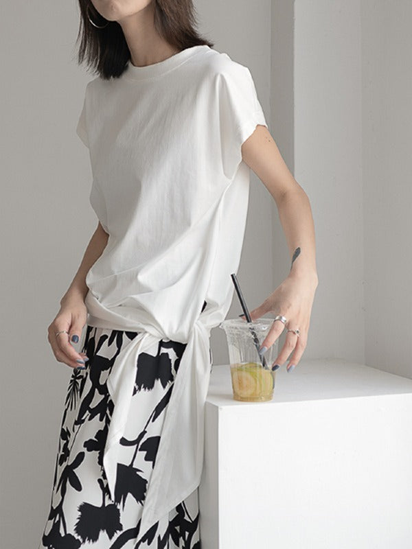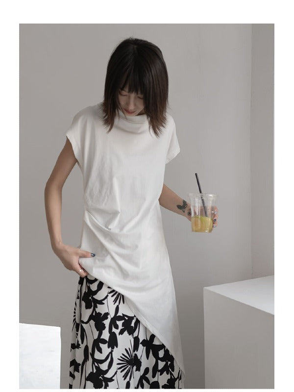 LOOSE COPPED COTTON CHIC DESIGNED LONG T-SHIRTS