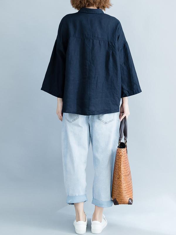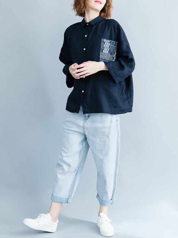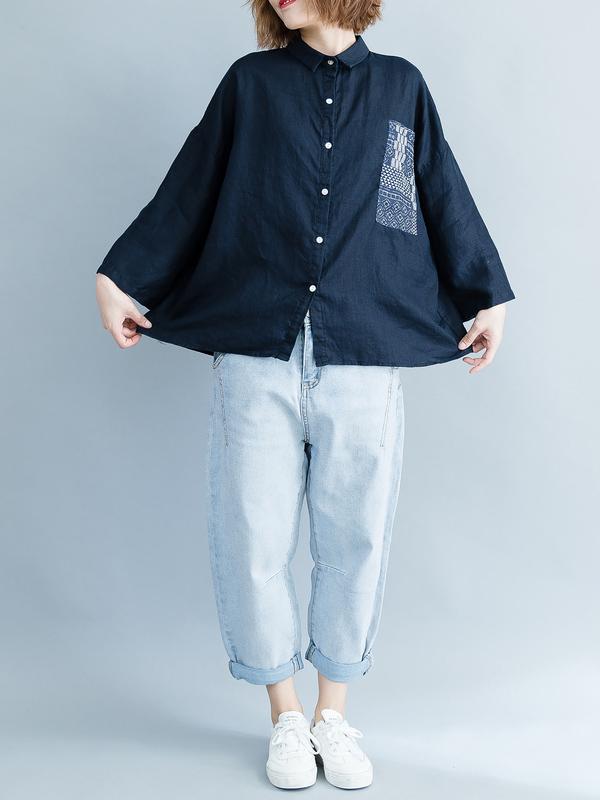Loose Floral Printed Lapel Long Sleeves BLouses
