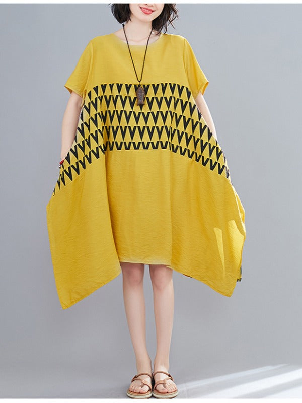LOOSE GEOMETRIC SPLICING PRINT CROPPED DRESS