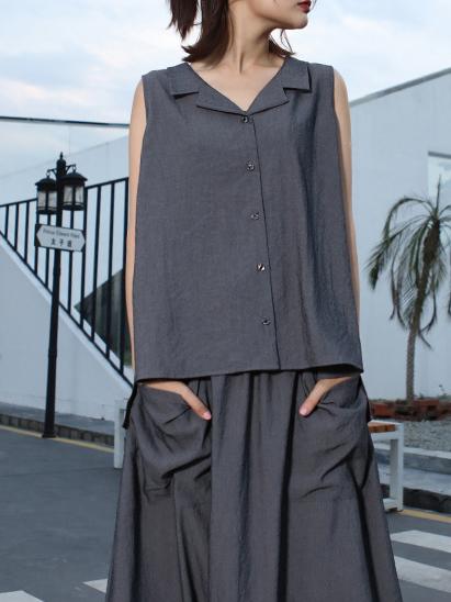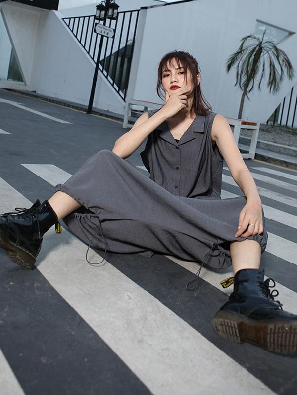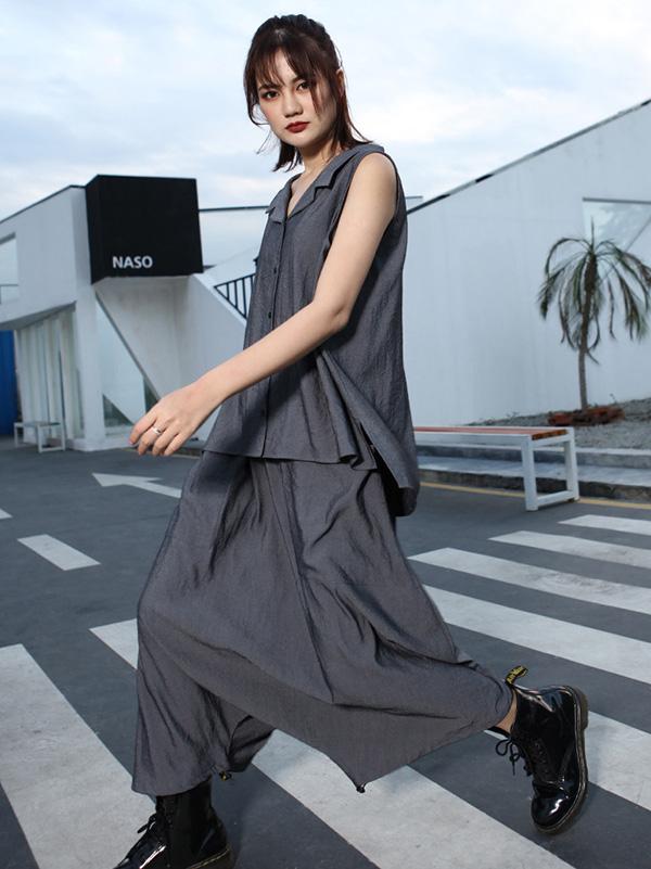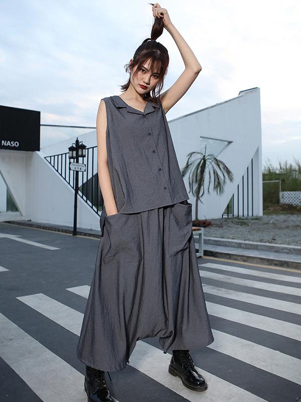 LOOSE HIGH-LOW LAPEL SLEEVELESS VEST&HAREM PANTS SUITS