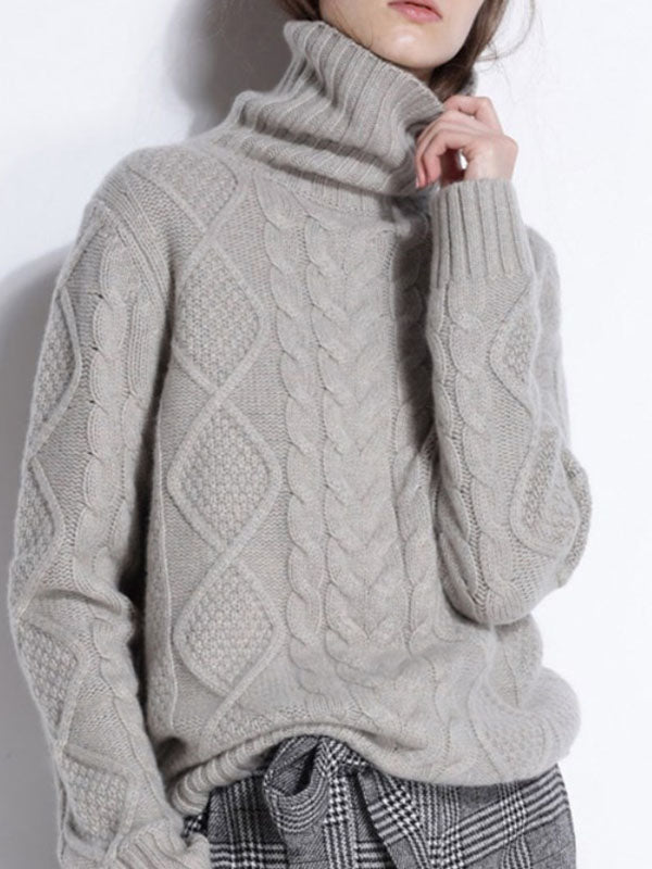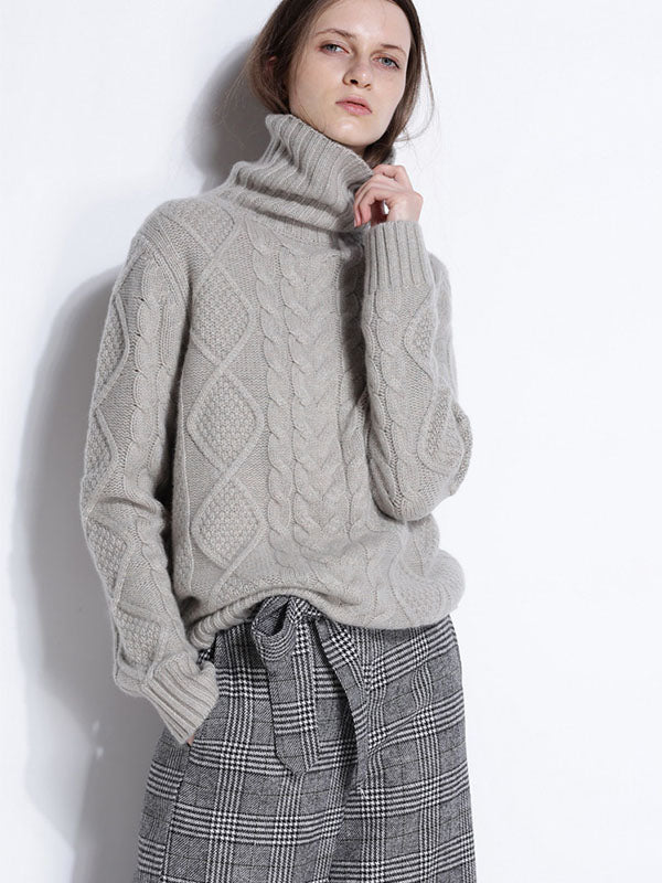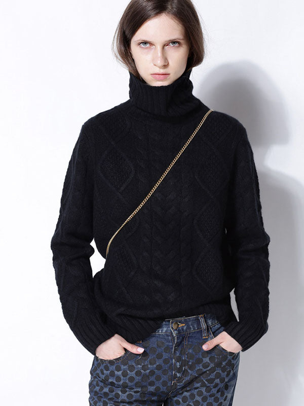 LOOSE HIGH-NECK CASHMERE SOLID COUPLE SWEATER