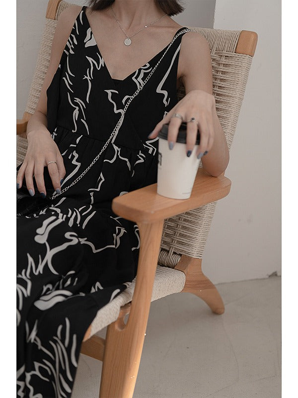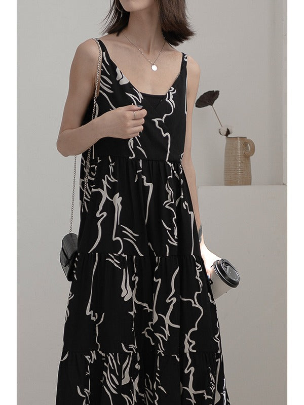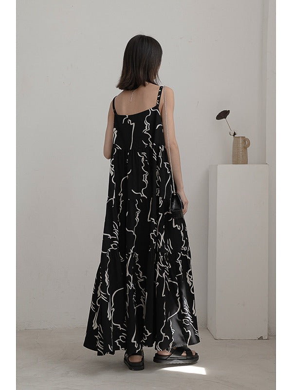 LOOSE INK PRINTED SLIP LONG DRESS