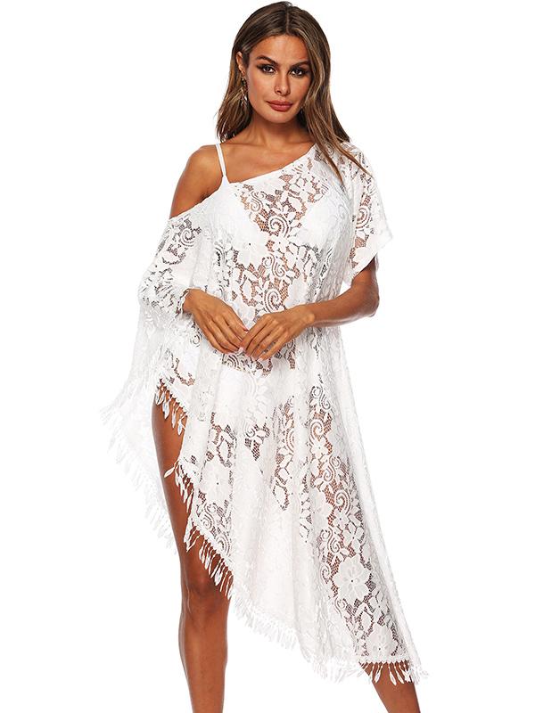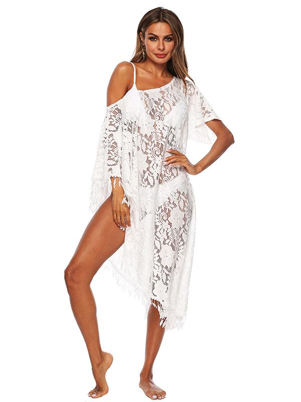 Loose Lace Tasseled Irregular Beach Cover-Up