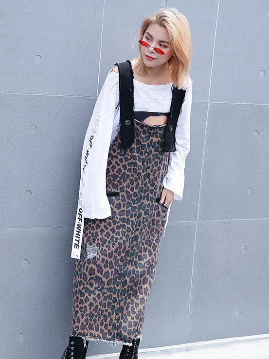 Loose Leopard Braces Dress