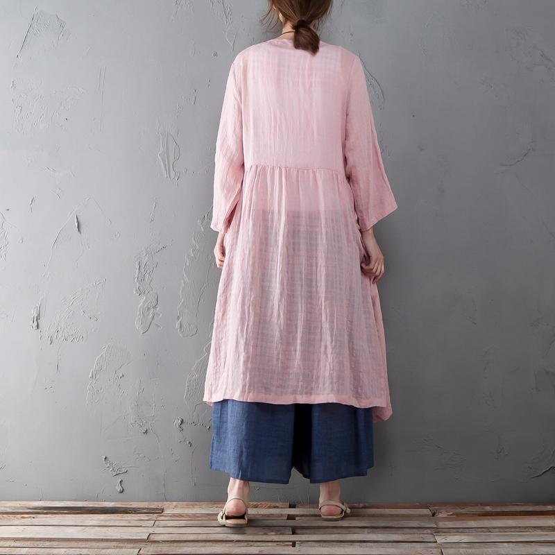 Loose Linen Long Sleeve Pink Lacing Lattice Coat