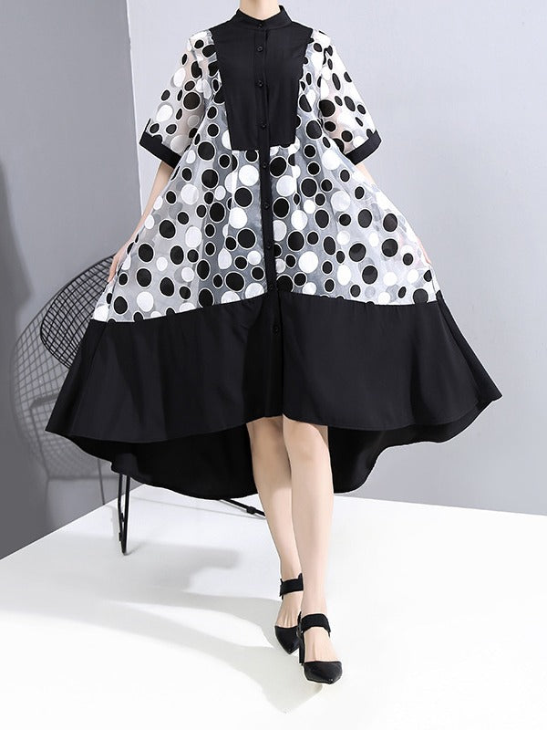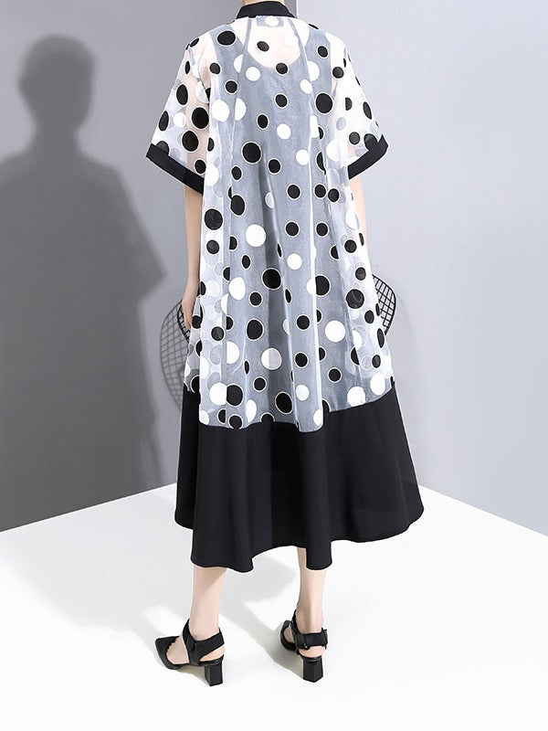 LOOSE MESH POLKA-DOT TWO-PIECES MIDI DRESS