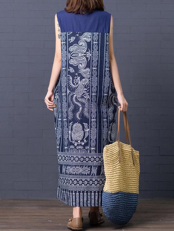 Loose National Style Sleeveless Long Dress