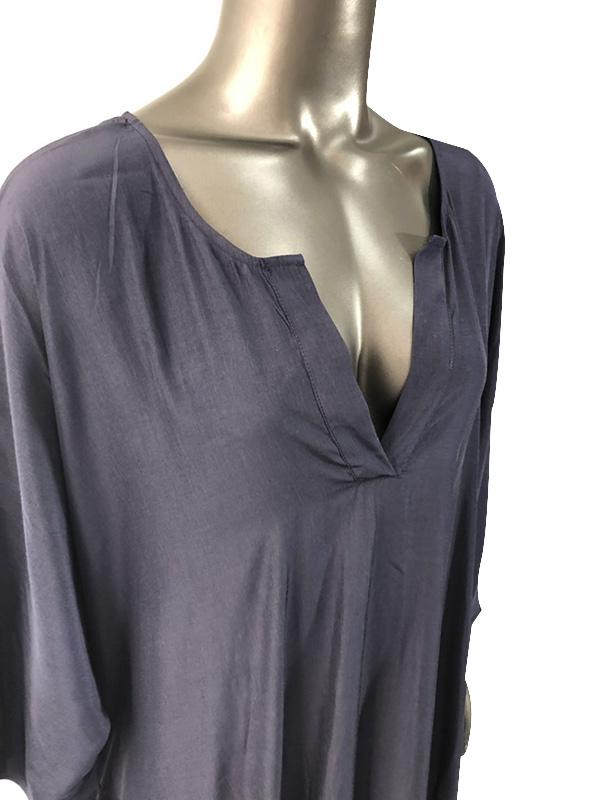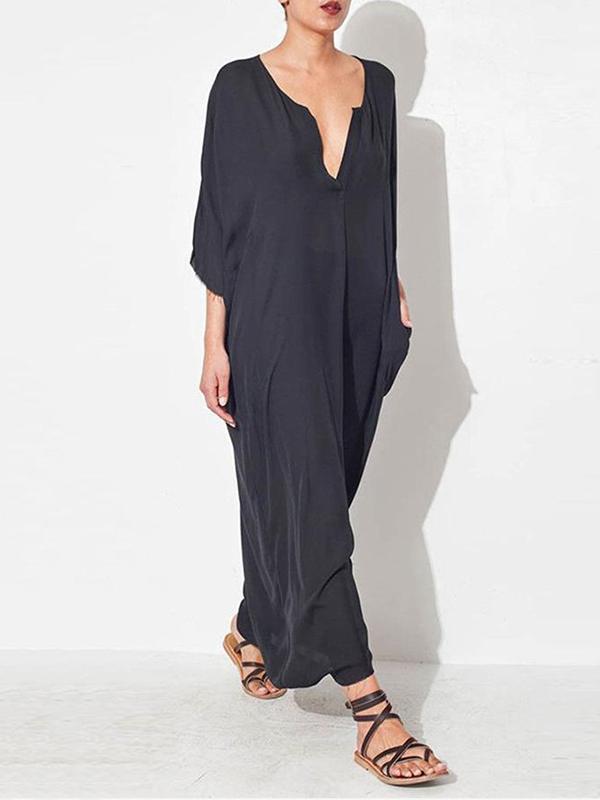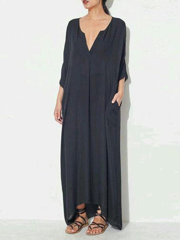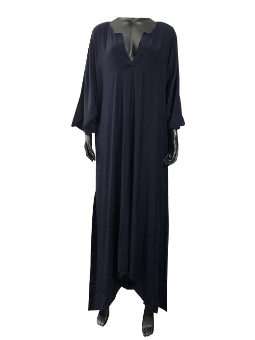 Loose Navy-blue V-neck Half-sleeves Long Dress