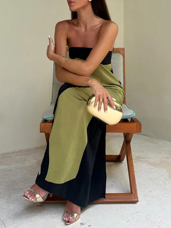 Loose Plus Size Printed Split-Joint Tube Maxi Dresses