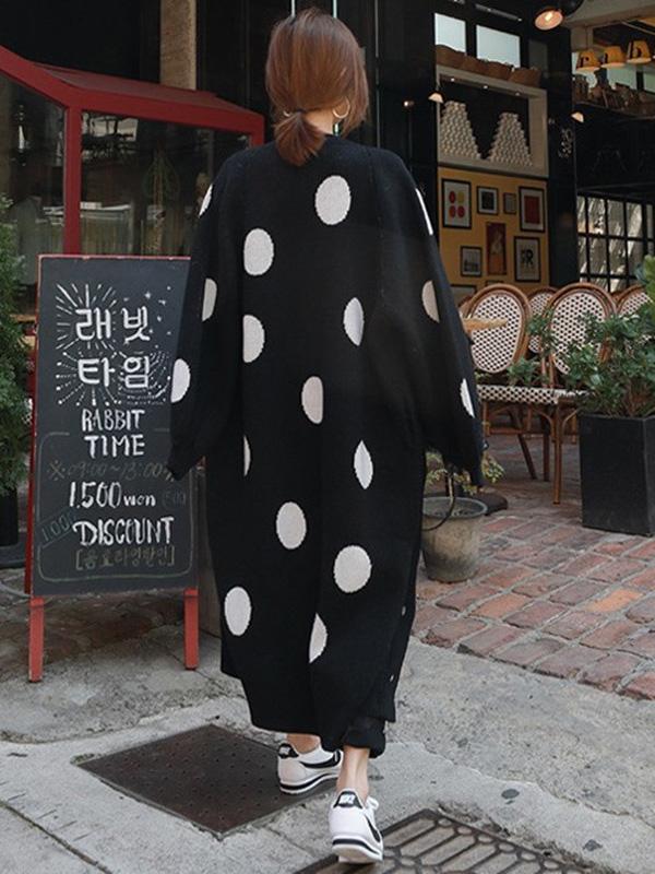 LOOSE POLKA-DOT PRINTED LONG COVER-UP