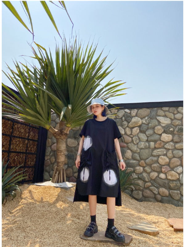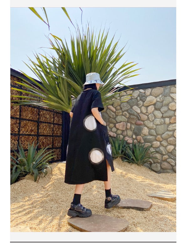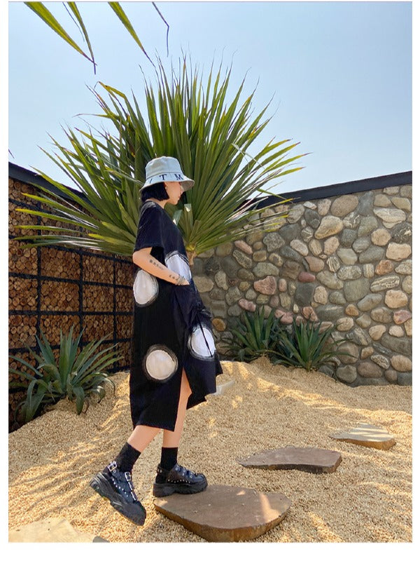 LOOSE POLKA-DOT ROUND-NECK LONG DRESS