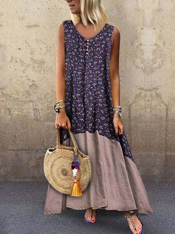 Loose Printed Sleeveless Split-joint Maxi Dress