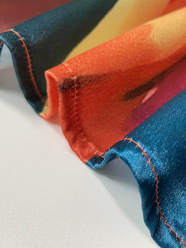 Loose Puff Sleeves Elasticity Flower Print Split-Front Round-Neck Maxi Dresses