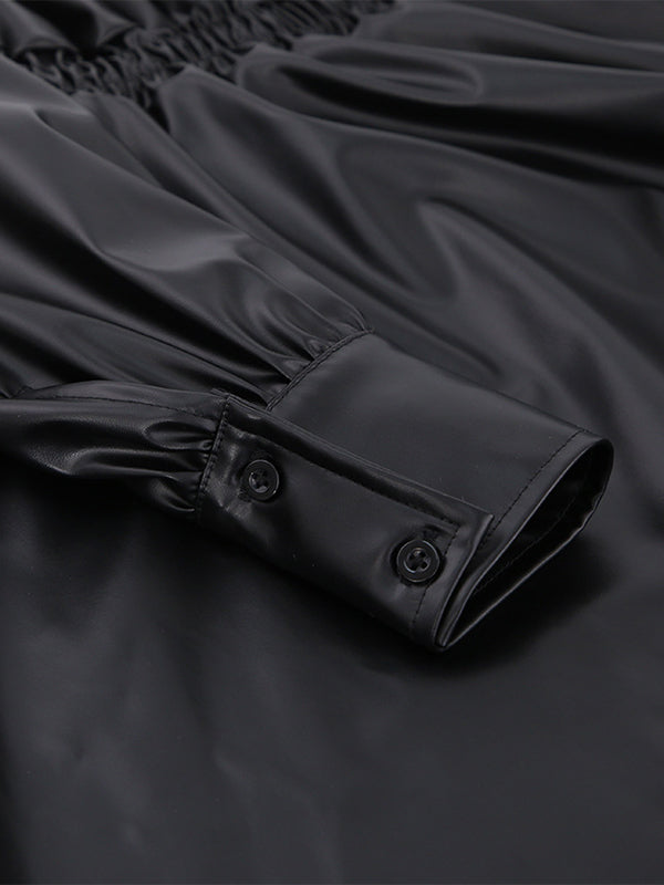 Loose Puff Sleeves Elasticity Pleated Split-Joint Peter Pan Collar Mini Dresses