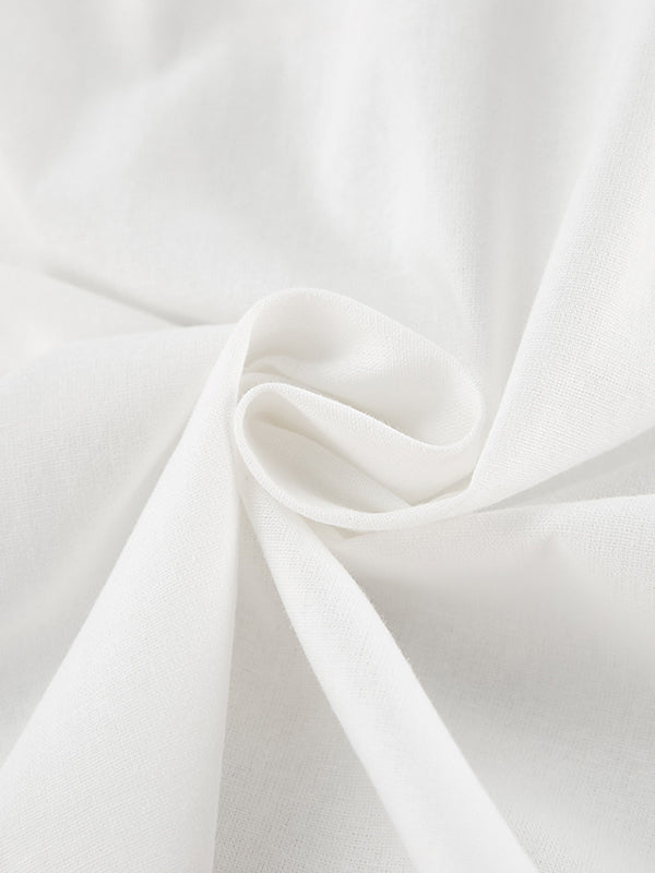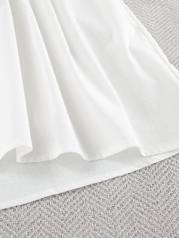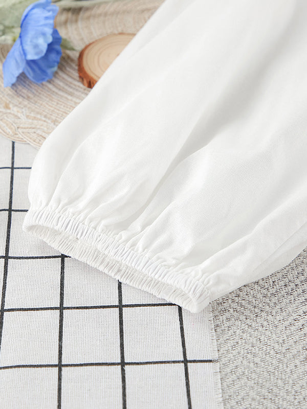 Loose Puff Sleeves Lace-Up Pleated See-Through Solid Color V-Neck Mini Dresses Sleep Dress