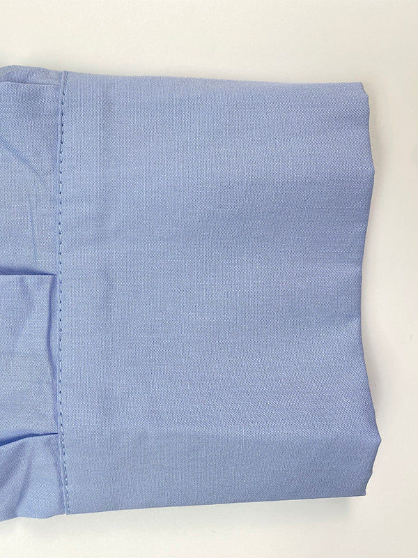 Loose Puff Sleeves Pleated Solid Color Split-Joint Lapel Maxi Dresses Shirt Dress