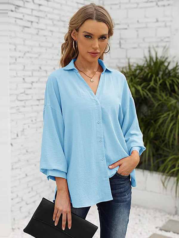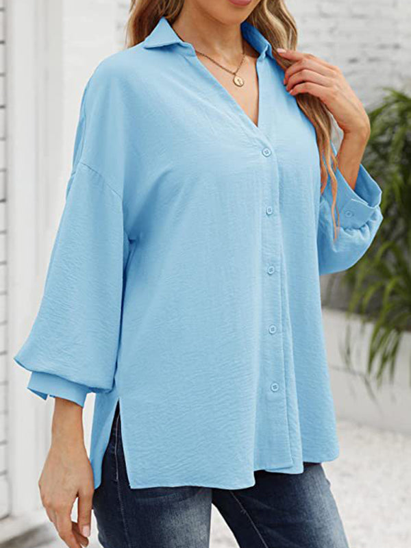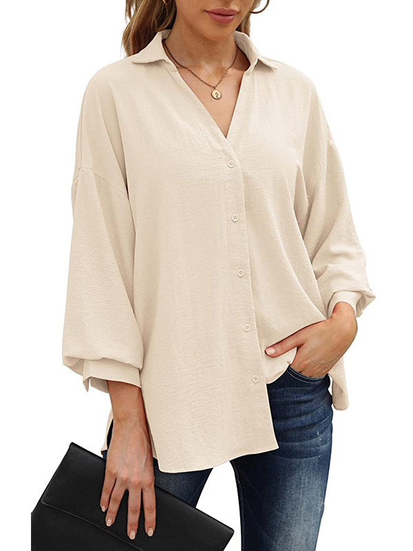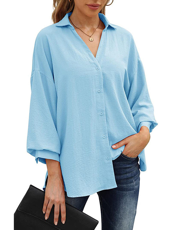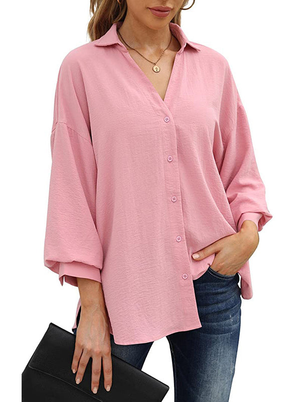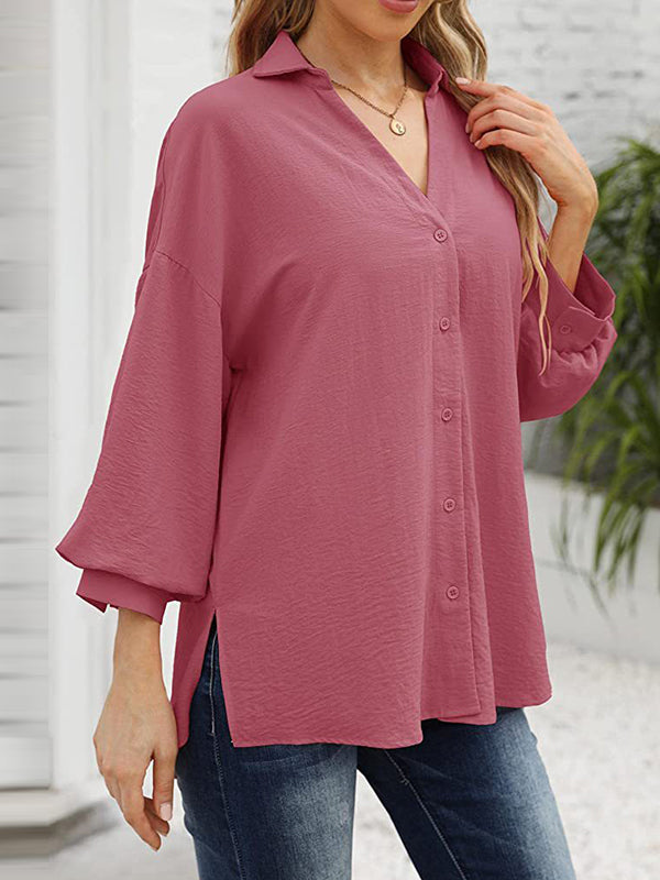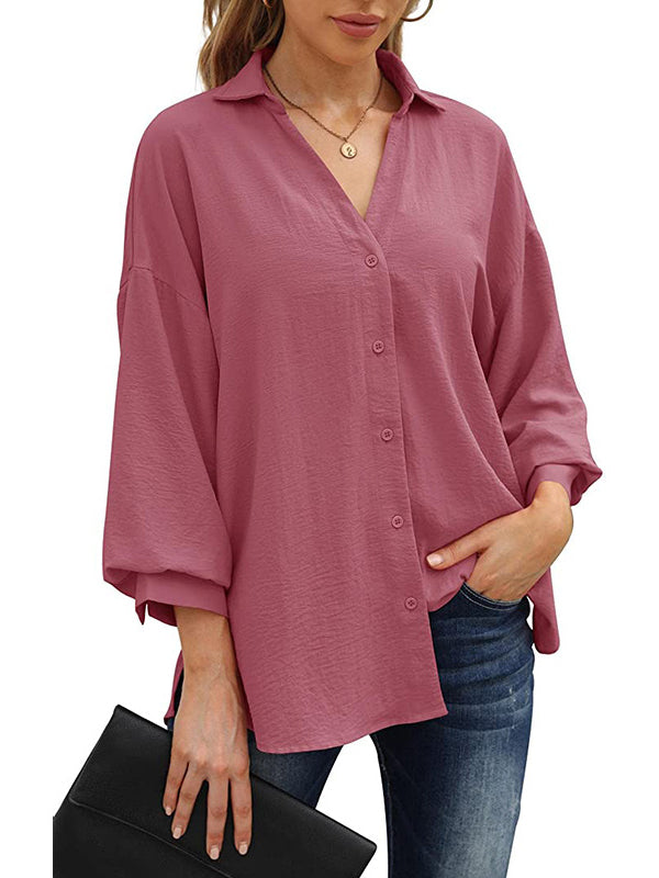 Loose Puff Three-Quarter Sleeves Solid Color Lapel Blouses
