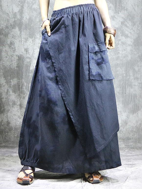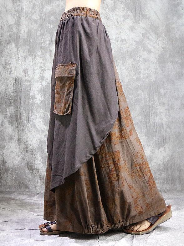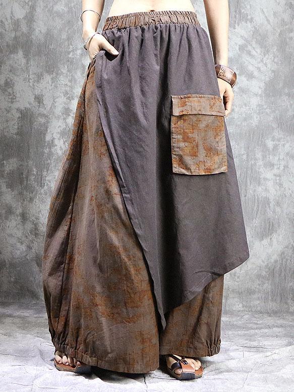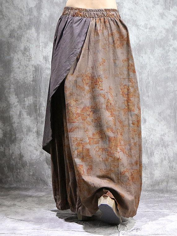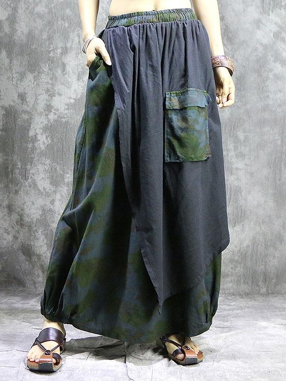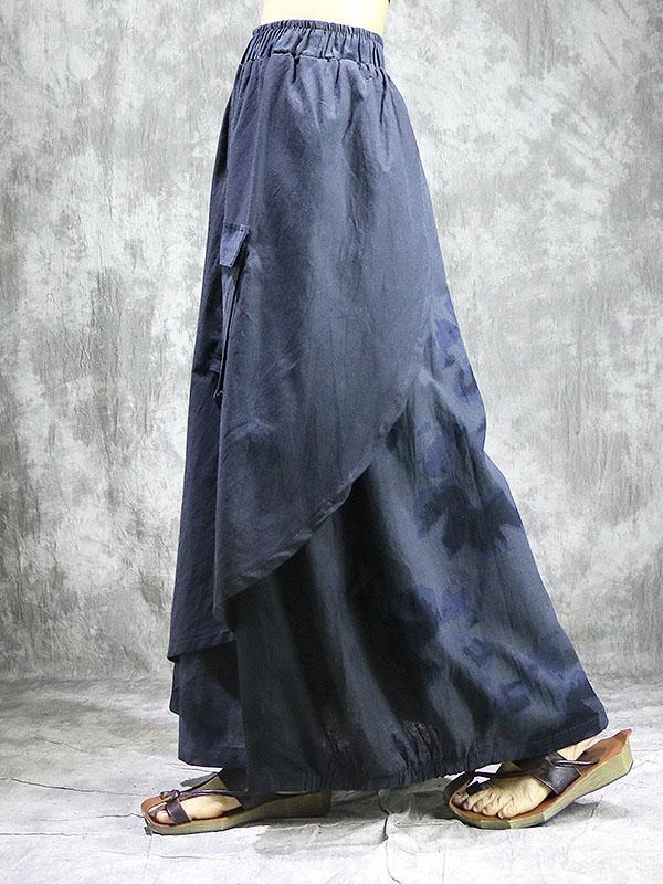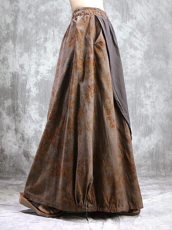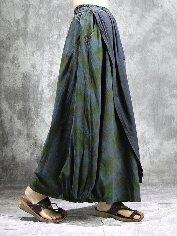 Loose Ramie Cotton Split-joint Printed Skirt Bottom