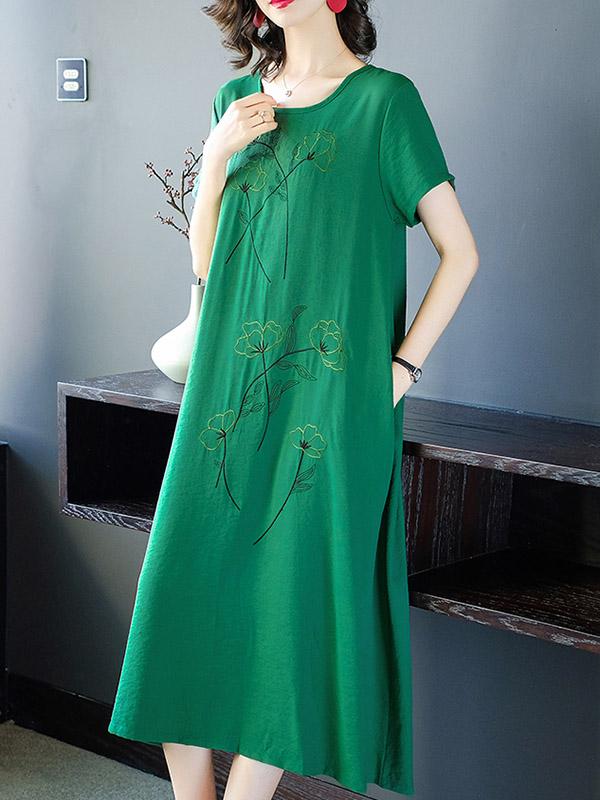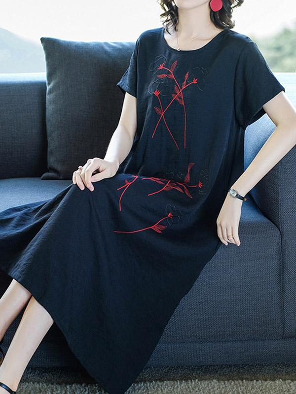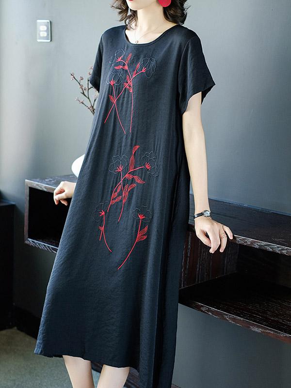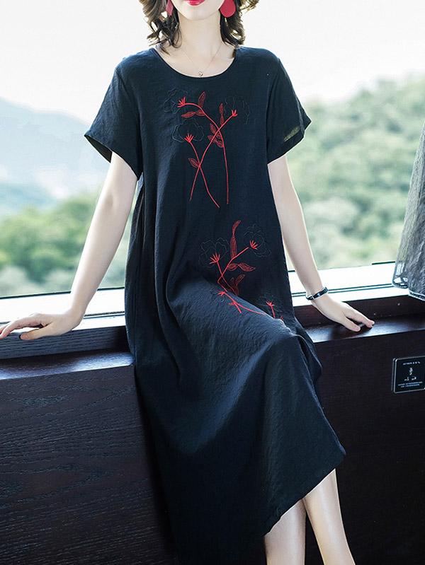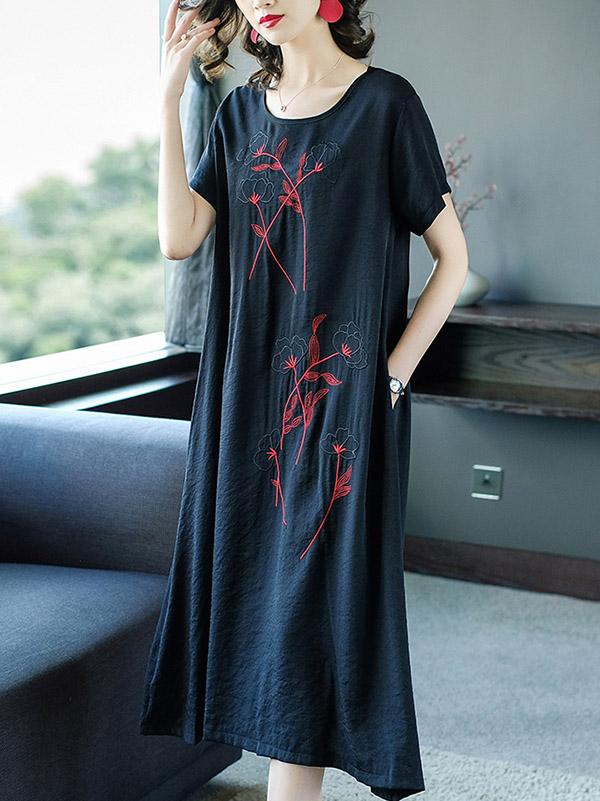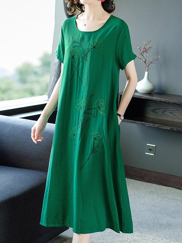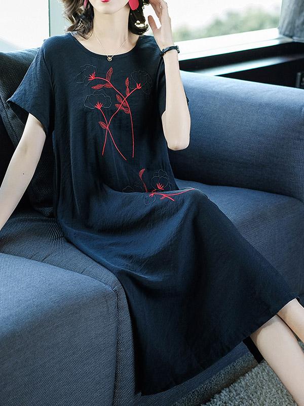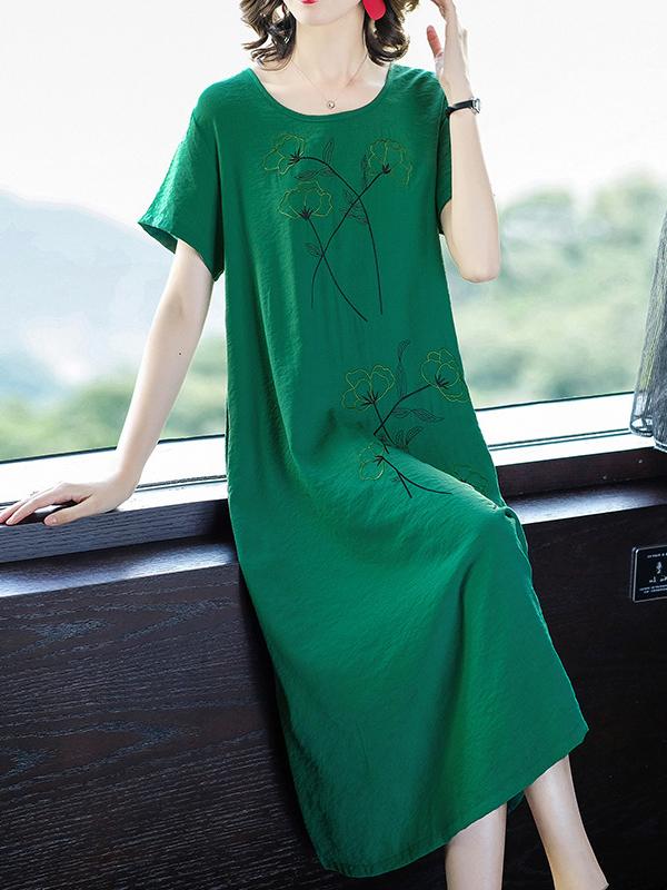 Loose Round-neck Embroidery Dress