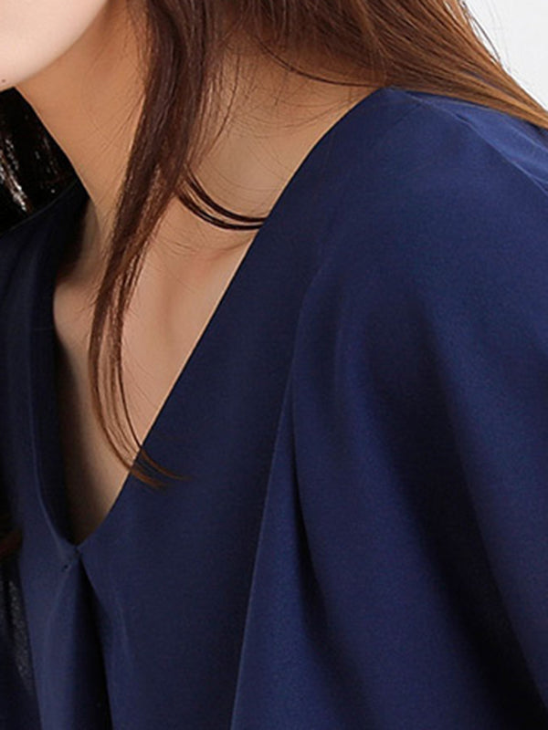 Loose Short Sleeves Back Pleated Solid Color Round-Neck T-Shirts Tops