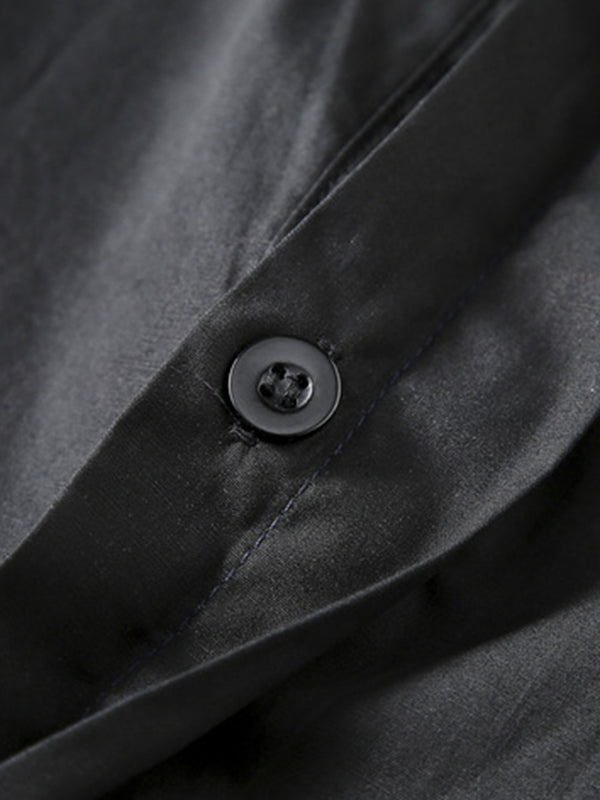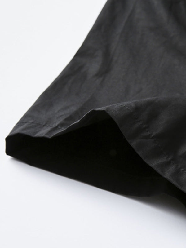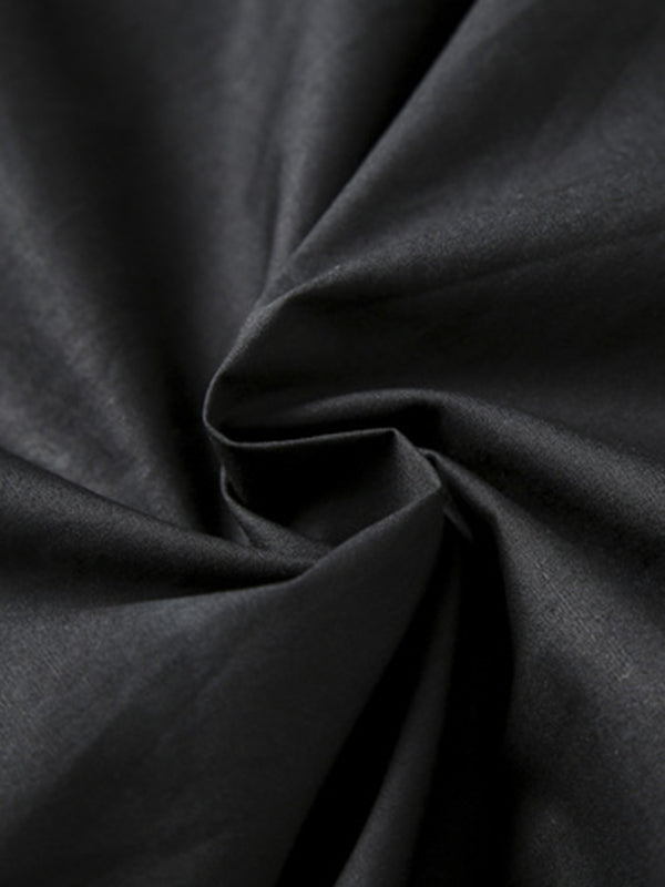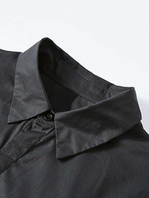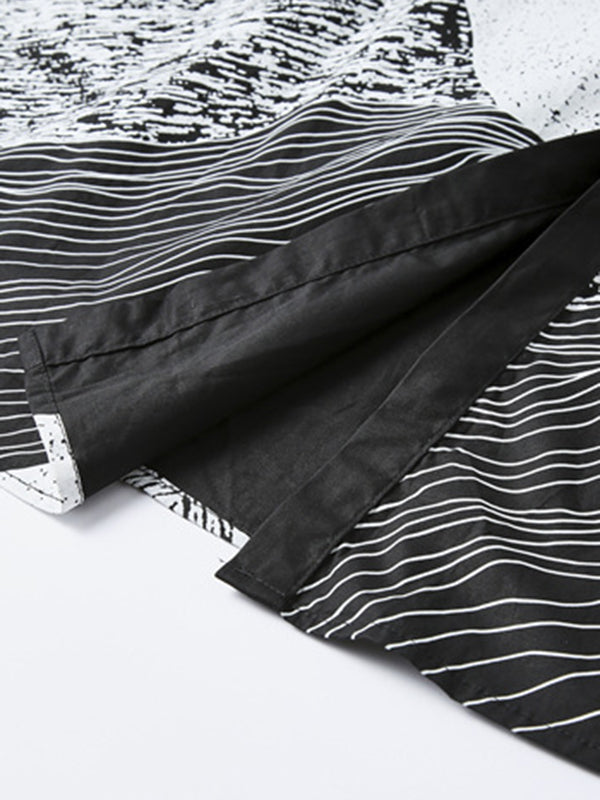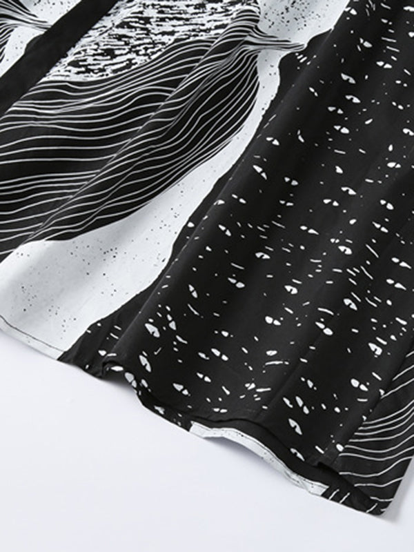 Loose Short Sleeves Contrast Color Drawstring Printed Tied Waist Lapel Midi Dresses Shirt Dress